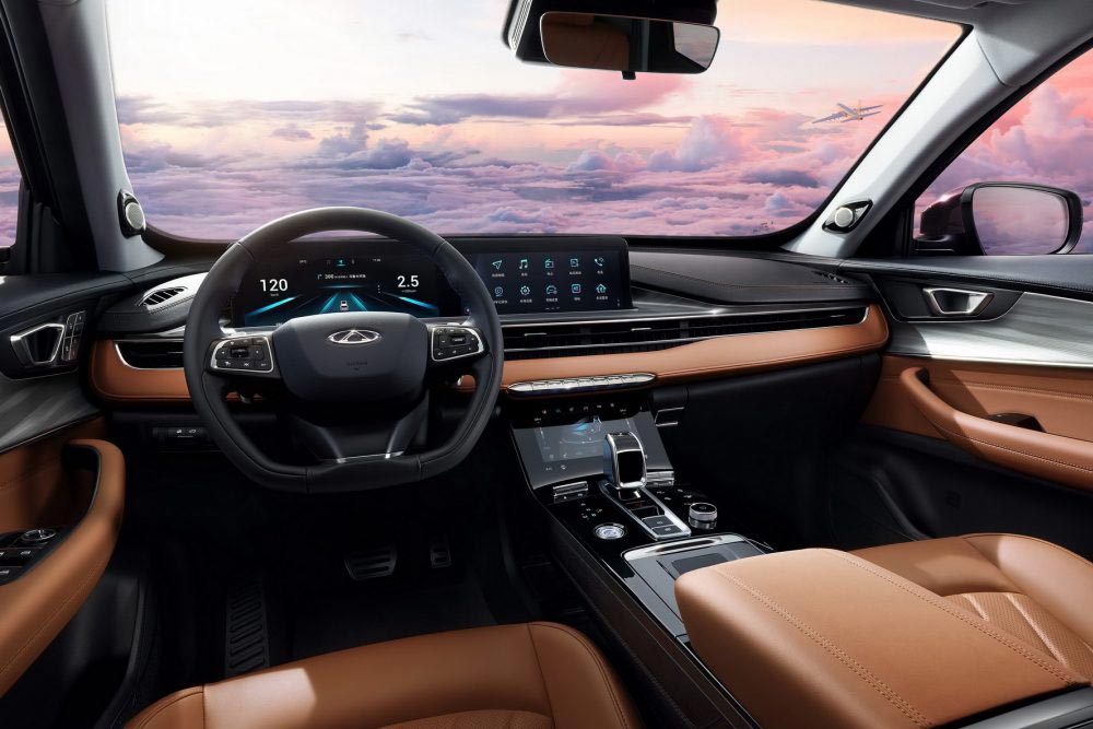 Αρκετά γενναιόδωρο σε τεχνολογία και χώρους είναι το Tiggo 8 Pro, αφού στην 7θέσια διάταξη οι δύο τελευταίες θέσεις αναδιπλώνονται πλήρως, δημιουργώντας ένα επίπεδο δάπεδο. Το τεράστιο πορτ μπαγκάζ έχει χωρητικότητα 889 λτ. στην 5θέσια έκδοση (835 λτ. το Kodiaq) και φτάνει έως τα 1.930 λτ. με την αναδίπλωση και της μεσαίας σειράς καθισμάτων. Σχεδιαστικά το εσωτερικό του Tiggo 8 Pro ακολουθεί την τάση της εποχής με μινιμάλ και αισθητική και πλήρη ψηφιοποίηση. Στο κέντρο του ταμπλό κυριαρχεί η οθόνη αφής των 12,3 ιντσών, μαζί με τον ίδιας διάστασης ψηφιακό πίνακα οργάνων. Οθόνη αφής 8 ιντσών χρησιμοποιείται και για τον έλεγχο του κλιματισμού, η οποία βρίσκεται στη βάση της κεντρικής κονσόλας με τον ιδιαίτερα καλαίσθητο και πολυτελή σχεδιασμό.