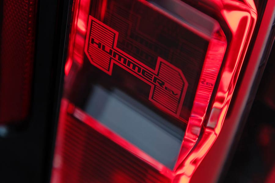 Καταρχάς, το νέο Hummer είναι pick up. Σε αντίθεση με τα H2 και H3, που ήταν SUV, το EV επιστρέφει οπτικά στο μοτίβο του αρχέγονου H1. Με τη διαφορά ότι εδώ, το πίσω μέρος είναι καρότσα. Πάντως, η εμφανισιακή σύνδεση γίνεται αυτόματα με το H1. Ανάλογη έκδοση είχε και το H2, με πολύ μικρή εμπορική επιτυχία πάντως. Στο εμπρός μέρος δεσπόζει η χαρακτηριστική μάσκα, που σε κάθε κομμάτι της φιλοξενεί από ένα γράμμα του ονόματος, με τα δυο άκρα να αποτελούν τα LED φωτιστικά σώματα. Ο τεράστιος προφυλακτήρα και η αναλόγων διαστάσεων προστατευτική ποδιά καλύπτουν το μεγαλύτερο τμήμα του εμπρός μέρους, προϊδεάζοντας για τις εκτός δρόμου δυνατότητες του αυτοκινήτου.