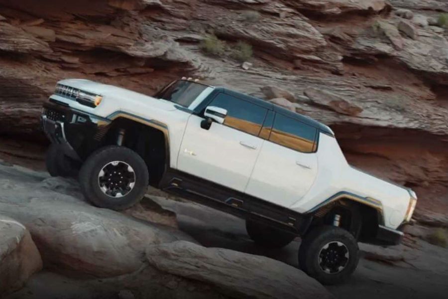 Στο προφίλ δεσπόζουν τα πελώρια χωμάτινα ελαστικά Goodyear Wrangler All Territory MT, που καλύπτουν τις 18άρες ζάντες και δίνουν τη δυνατότητα στο νέο Hummer να υπερκεράσει κάθετα εμπόδια ύψους έως 450 χλστ., αλλά και να περνάει από νερό σε βάθος έως 610 χλστ.! Για τους πιο απαιτητικούς, διατίθενται ακόμα μεγαλύτερα ελαστικά. Παράλληλα, διατίθεται αερανάρτηση με λειτουργία Extract, που αυξάνει την απόσταση από το έδαφος κατά 149 χλστ. για τα πολύ δύσκολα σημεία.