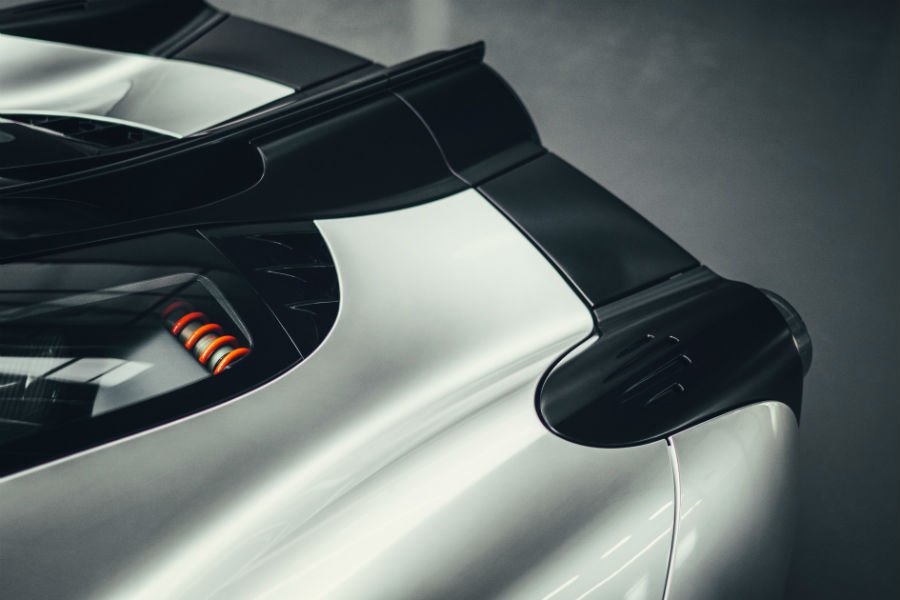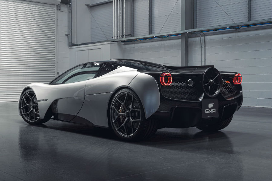 Πίσω, δεσπόζει ο αεραγωγός που δημιουργεί το διαβόητο ground effect (απαγορευμένη τεχνολογία στη Formula 1 από αρχές 80’s). Ο διερχόμενος από το πάτωμα αέρας κυριολεκτικά αναρροφάται από τον ανεμιστήρα (Fan Interactive Aero System ή FIAS το αποκαλεί ο Murray), παράγοντας απίστευτα ποσά κάθετης δύναμης. Ο αεραγωγός λειτουργεί χάρις σε ένα υβριδικό σύστημα 48 Volt και περιστρέφεται στις 7.000 σ.α.λ. όταν το Τ.50 κινείται τέρμα γκάζι, συνεργαζόμενο με δυο ηλεκτρικά ελεγχόμενα spoiler και ενεργό διαχύτη. Η προηγμένη αεροδυναμική αυξάνει κατά 50% την παραγωγή κάθετης δύναμης, μειώνει την οπισθέλκουσα κατά 12,5%, προσθέτει 50 ίππους στον κινητήρα και μειώνει την απόσταση φρεναρίσματος από τα 240 χλμ./ώρα, κατά 10 μέτρα.