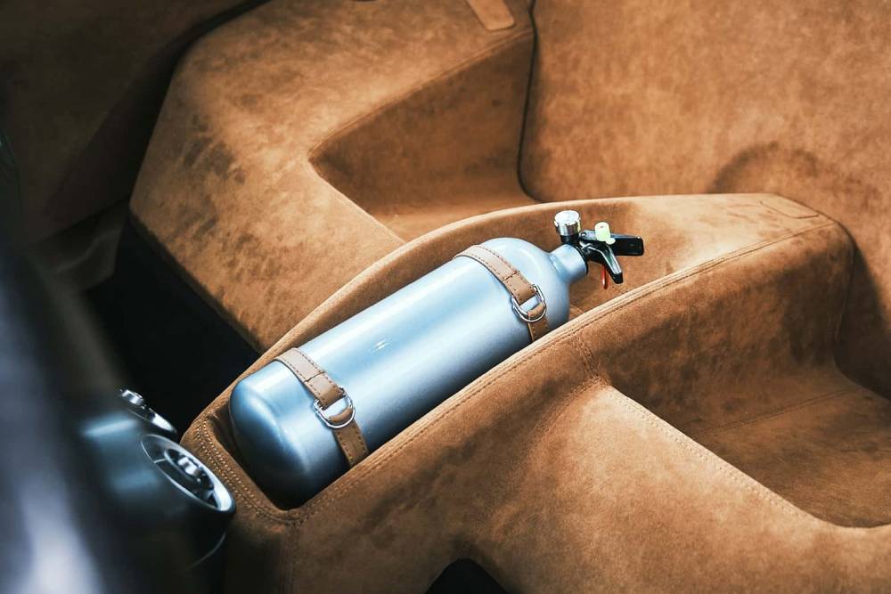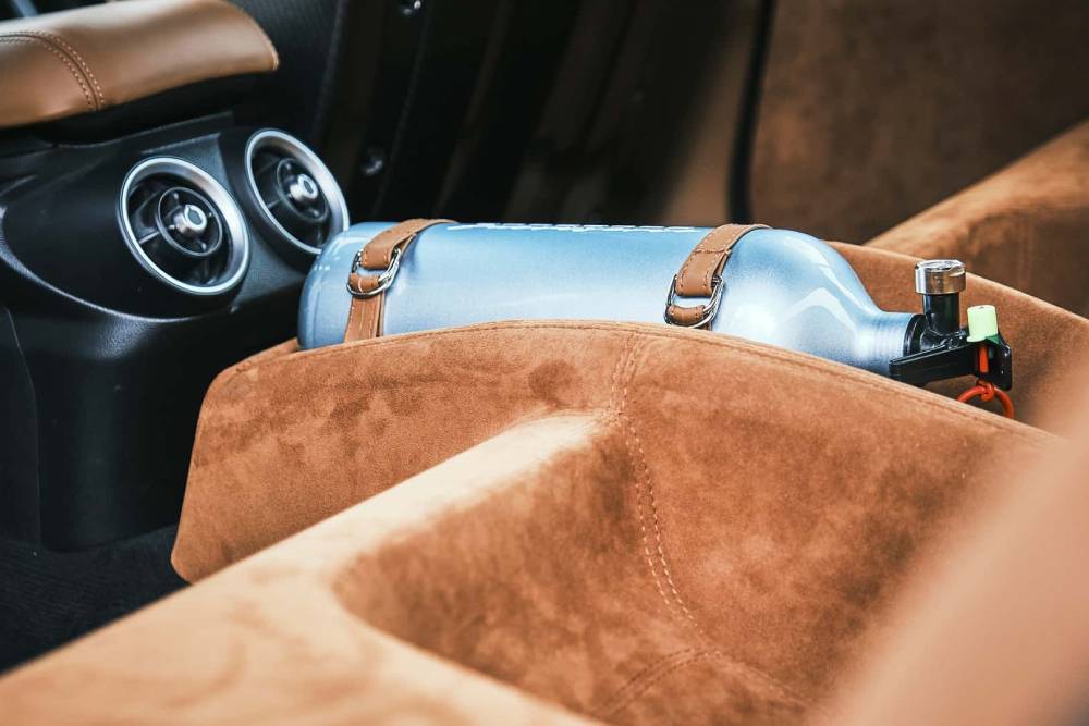 Η μεγαλύτερη διαφορά της Alleggerita από την απλή Fuoriserie εντοπίζεται στην καμπίνα, όπου τη θέση των πίσω καθισμάτων παίρνει ένα ανθρακονημάτινο ράφι ντυμένο με alcantara (όπως και σχεδόν τα πάντα στα ενδότερα της Alleggerita), το οποίο προσφέρει θήκες για δυο κράνη και συνοδεύεται από πυροσβεστήρα (αν και σε «ψήνει» για μπουκάλα νίτρο). Τα μπάκετ της Recaro εννοείται παραμένουν για οδηγό-συνοδηγό.
