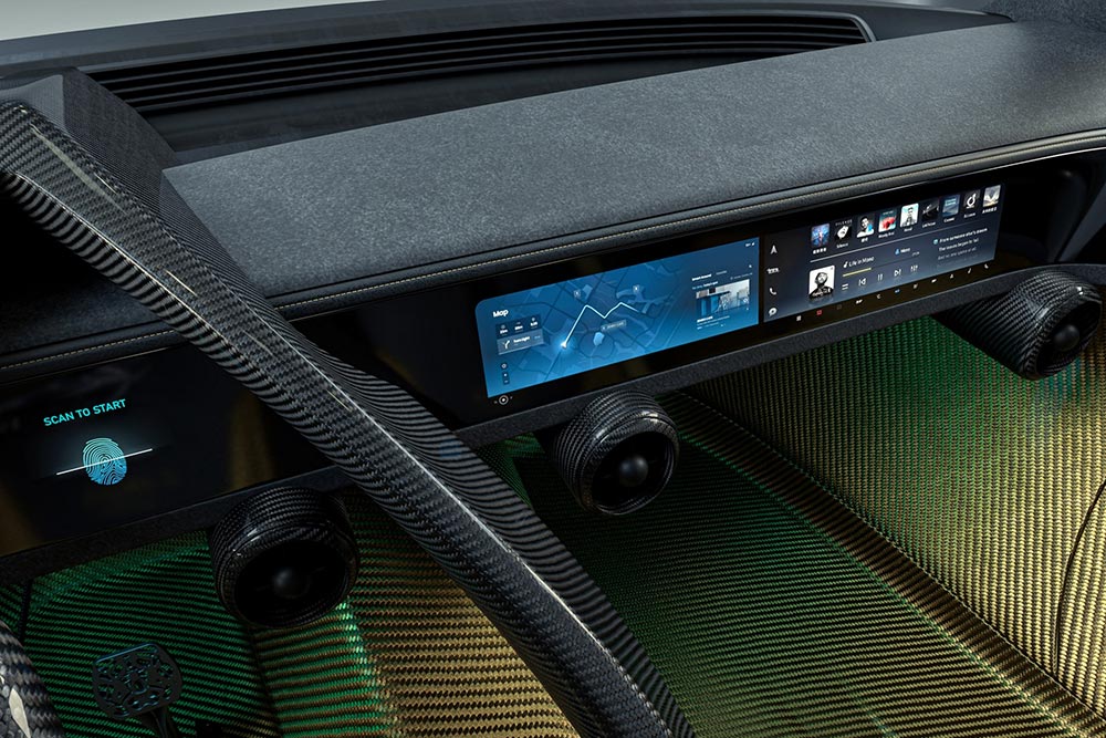 Ας δούμε όμως πρώτα την καρδιά που χτυπάει στα σωθικά του. Πρόκειται για ένα 4.0 λτ. V10 twin turbo μηχανικό σύνολο σε δύο εκδόσεις ισχύος, με μπλοκ από αλουμίνιο billet, έμβολα και ράβδους τρισδιάστατης εκτύπωσης από τιτάνιο ή ανθρακόνημα, εκκεντροφόρο άξονα τιτανίου, βαλβίδες τιτανίου ή νικελίου Inconel, καθώς και ένα ζευγάρι από τουρμπίνες κατασκευασμένες από ανθρακόνημα, τιτάνιο και κεραμικές ενώσεις.