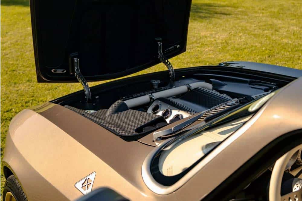 Εμφανισιακά δεν χρειάζονται πολλά λόγια. Το χρυσαφί χρώμα καλύπτει τα πάντα και δημιουργεί μια μοναδική οπτασία, συνδυαζόμενη με μπεζ δερμάτινο σαλόνι και πολύ διακριτικά τοποθετημένο γυμνό ανθρακόνημα στο αεροδυναμικό πακέτο. Μηχανικά δεν αλλάζει τίποτα, κάτι που σημαίνει ότι η νέα Totem GT Super Farina, , όπως ονομάζεται η σαγήνη σε τέσσερις τροχούς, κινείται από τον αλουμινένιο 2.9 V6 twinturbo των 591 ίππων στις 7.200 σ.α.λ.μ (κόφτης στις 7.500 σ.α.λ.) και 700 Nm στις 3.000-6.000 σ.α.λ., ζυγίζοντας μόλις 180 κιλά. Αριθμοί που σύμφωνα με τους Ιταλούς, καθιστούν τον κινητήρα τους (εξελιγμένο σε συνεργασία με την Italteenica) ως τον πιο συμπαγή και ελαφρύ διτούρμπινο V6, που έχει μπει ποτέ σε αυτοκίνητο παραγωγής!