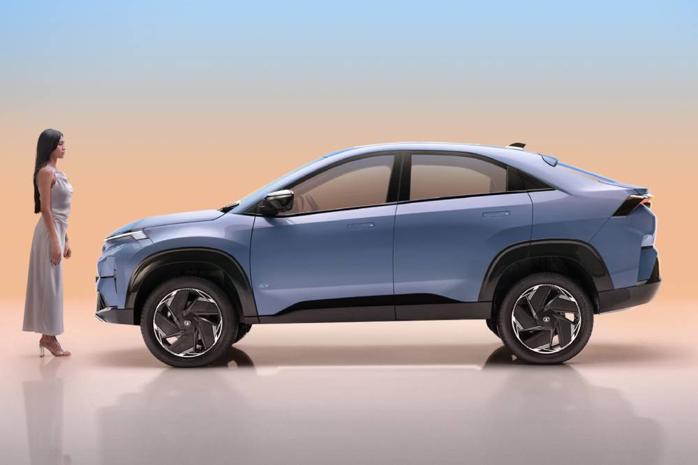 Βέβαια τα δυο μοντέλα καμία σχέση δεν έχουν μεταξύ τους, πλην στο σχήμα του αμαξώματος. Οι σχεδιαστές του Curvv εμπνεύστηκαν ξεκάθαρα από τις γραμμές της X2, ειδικά στη διαμόρφωση του πίσω μέρους, ωστόσο ομολογουμένως έκαναν πολύ καλή δουλειά στη δημιουργία μιας ιδιαίτερης πρότασης. Το νέο crossover της Tata δείχνει δυναμικό από μπροστά, συνδυάζοντας ιδανικά το αιχμηρό ρύγχος με τα ενιαία LED και τον επιθετικό προφυλακτήρα, ενώ κερδίζει τις εντυπώσεις και πίσω. Το μέγεθος δεν είναι μεγάλο, παρότι φαίνεται τέτοιο, καθώς το μήκος δεν ξεπερνά τα 4,31 μέτρα και το πλάτος τα 1,81 μέτρα (2,56 μέτρα μεταξόνιο, 1,63 μ. το ύψος). Εντύπωση προκαλούν οι πτυσσόμενες χειρολαβές, την ώρα που οι όμορφες ζάντες κυμαίνονται στις 17-18 ίντσες.