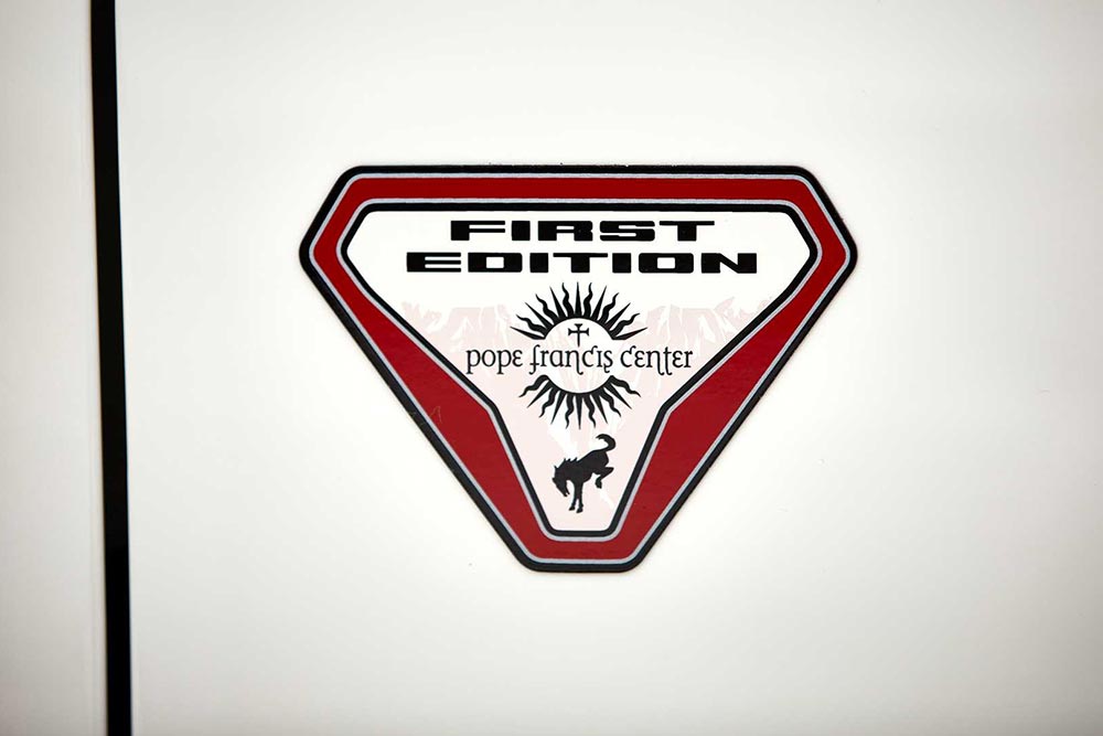 Το Ford Bronco εκείνο ήταν βαμμένο στην απόχρωση Wimbledon White και στο πίσω μέρος του υπήρχε μια ειδική κατασκευή που επέτρεπε στον Πάπα να σηκώνεται εύκολα και να χαιρετά το πλήθος. Σήμερα η Ford θέλησε να τιμήσει εκείνο το Bronco, κατασκευάζοντας ένα και μοναδικό Bronco Pope Francis Center First Edition, το οποίο και θα δημοπρατηθεί. Το ειδικό Bronco είναι βαμμένο στην ίδια σπάνια απόχρωση Wimbledon White, ενώ έχουν τοποθετηθεί όμοιες ζάντες με το μοντέλο του 1979, οι οποίες «ντύνονται» με εκτός δρόμου ελαστικά. Εντυπωσιακό είναι και το bull bar στον εμπρόσθιο προφυλακτήρα, όπως επίσης κι οι κόκκινες πινελιές στο αμάξωμα, αλλά και στα καπάκια των καθρεπτών. Στο εσωτερικό η ταπετσαρία των καθισμάτων είναι στην απόχρωση Wimbledon White, με τις κόκκινες λεπτομέρειες να υπάρχουν στα καθίσματα, στο ταμπλό ακόμα και στον πίνακα οργάνων!