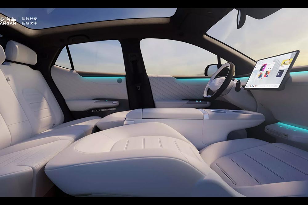 Το εσωτερικό του Changan CD701 είναι όπως θα το περίμενε κανείς από ένα σύγχρονο ηλεκτρικό αυτοκίνητο. Κοινώς απλό σχεδιαστικά με μινιμάλ γραμμές, με μια μεγάλη κεντρική οθόνη στο κέντρο του ταμπλό, head-up display και ελάχιστα έως καθόλου φυσικά χειριστήρια. Οι μελλοντικοί του επιβάτες φαίνεται ότι θα έχουν στη διάθεσή τους άπλετους χώρους για να απολαμβάνουν τα ταξίδια και τις εκδρομές τους. Περί τεχνικών προδιαγραφών, ηλεκτροκινητήρων και λοιπών στοιχείων, δεν έχει γίνει καμία αναφορά.