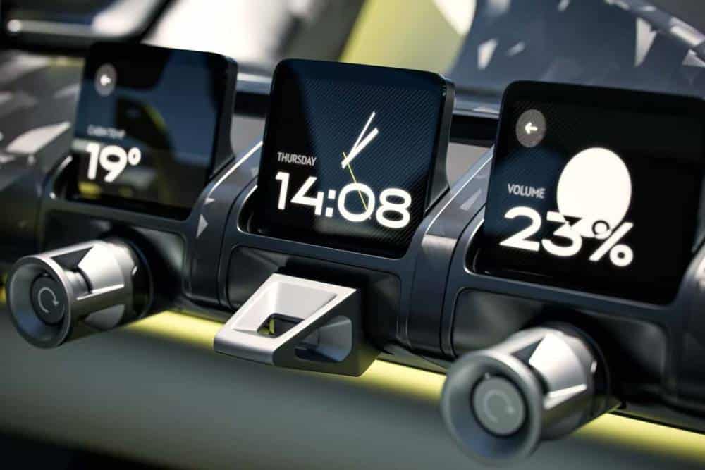 Στο εσωτερικό φαίνεται περισσότερο ότι πρόκειται για concept car, με φανταχτερά υλικά και χρώματα για τα καθίσματα και τις επενδύσεις, παρέα με μια σειρά από μικρές οθόνες (5 τον αριθμό) που ουσιαστικά υποκαθιστούν την παρουσία δυο μεγάλων για ψηφιακό καντράν και infotainment. Σύμφωνα με τους σχεδιαστές, αυτή η διάταξη πέρα από πιο καλαίσθητη, βοηθά και την εργονομία αφού κάθε μια μπορεί να απεικονίζει διαφορετικές πληροφορίες, ελαττώνοντας την ανάγκη του οδηγού να παίρνει το βλέμμα από το δρόμο για να ψάχνει πληροφορίες και ρυθμίσεις μέσω των μενού.
