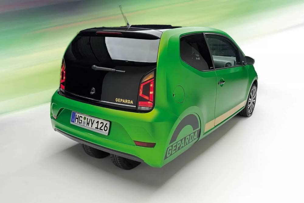 Το Geparda, όπως εύκολα μπορούμε να διακρίνουμε, είναι ένα ειδικά μεταποιημένο VW Up!. O πίσω άξονας του μικρού από το Βόλφσμπουργκ έχει αποχωρήσει, δίνοντας τη θέση του σε μια διάταξη διπλών τροχών στο κέντρο του υποπλαισίου. Μια κίνηση που περνάει από το «παραθυράκι» των κανονισμών, καθώς από τη μία το Geparda δεν κατηγοριοποιείται ως αυτοκίνητο, αλλά από την άλλη διαθέτει τέσσερις τροχούς (άρα δεν είναι και ακριβώς τρίκυκλο). Αυτή η νομοθετική ντρίπλα το βάζει στην κατηγορία L5e, κάτι που σημαίνει ότι δικαίωμα να το οδηγούν έχουν όσοι είναι κάτοχοι διπλώματος Α1 και ηλικιακά τουλάχιστον 16 ετών. Με άλλα λόγια εμπίπτει στην ίδια ταξινόμηση με τα Citroen Ami και XEV YoYo (λόγω τεσσάρων τροχών), αλλά προσφέρει χώρους και ανέσεις που τα κλασικά quaricycles δεν μπορούν λόγω μεγέθους.