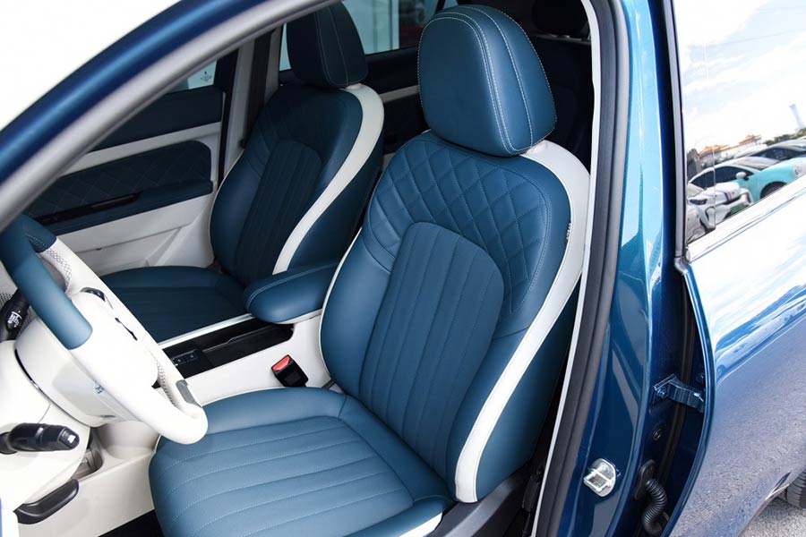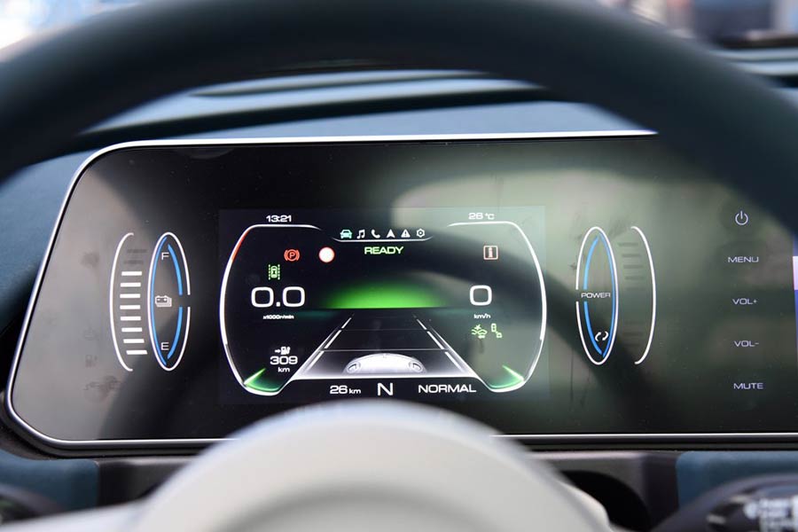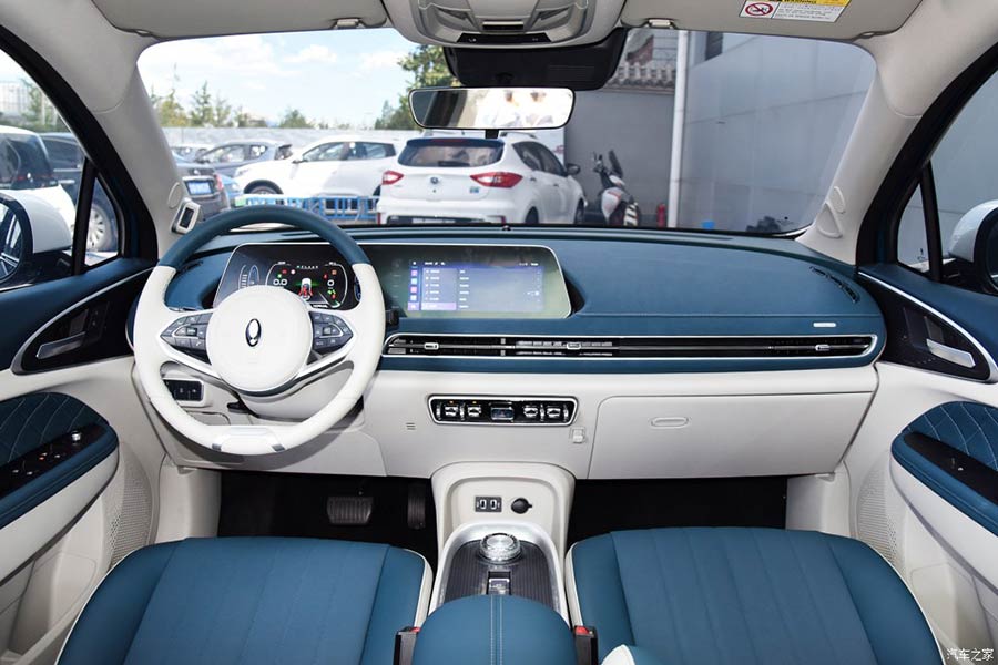 Εντυπωσιακό είναι το εσωτερικό του, τόσο από πλευράς τεχνολογίας, όσο και από πολυτέλεια, όπως μπορούμε να δούμε από τις φωτογραφίες και το βίντεο. Κυρίαρχο στοιχείο αποτελεί η μεγάλη ενιαία οθόνη που ενσωματώνει τον πίνακα οργάνων με το σύστημα πολυμέσων. Τα φυσικά χειριστήρια είναι ελάχιστα, ενώ την premium εικόνα του ενισχύουν οι δερμάτινες επενδύσεις στο ταμπλό, στα ρετρό καθίσματα και στις πόρτες.