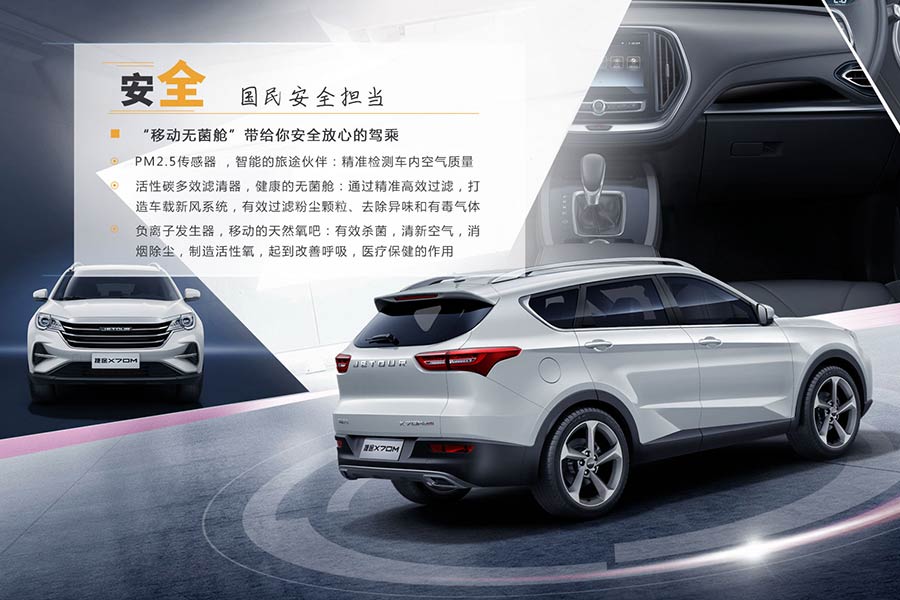 Στον εξοπλισμό του ακριβότερου X70M περιλαμβάνονται ESP, μετωπικοί αερόσακοι, LED φώτα, όλες οι ηλεκτρικές ευκολίες, ηλεκτρονικός κλιματισμός, ζάντες αλουμινίου, κάμερα οπισθοπορείας, πίσω αισθητήρες παρκαρίσματος, ψηφιακός πίνακας οργάνων 12,3 ιντσών, σύστημα πολυμέσων με οθόνη 10,1 ιντσών κ.λπ. Ουσιαστικά, εκεί που κυρίως υστερεί, είναι στα συστήματα ασφαλείας, αφού διαθέτει μόνο δύο αερόσακους.