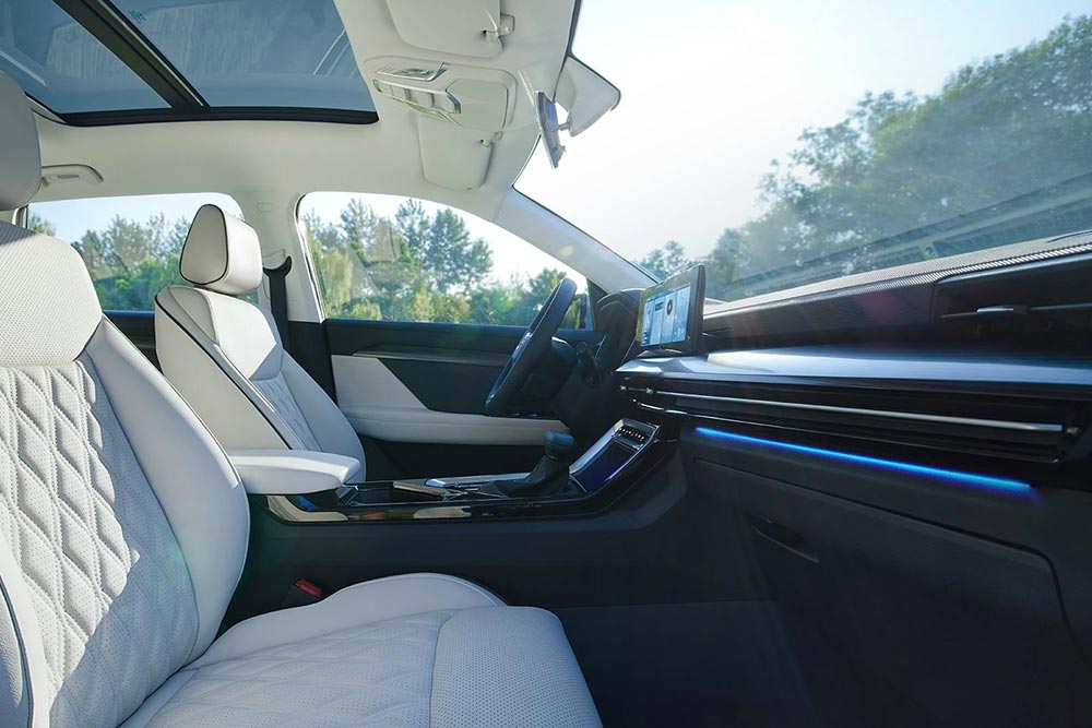 Αντίστοιχα λιτής αισθητικής είναι και το μινιμάλ εσωτερικό, με τις ευθείες γραμμές και τις επίπεδες επιφάνειες. Κυρίαρχο στοιχείο αποτελεί η οθόνη αφής των 10,25 ιντσών του συστήματος πολυμέσων. Επιπλέον φωτισμό χαρίζει η μεγάλη γυάλινη πανοραμική οροφή των 1.002 χλστ. μήκους και 800 χλστ. πλάτους. Αναμενόμενα οι χώροι που παρέχει η καμπίνα του Wuling Asta είναι πολύ άνετοι για πέντε επιβάτες και αποσκευές. Τα πίσω καθίσματα μπορούν να αναδιπλωθούν για να μεγιστοποιήσουν τη χωρητικότητα, ενώ οι φόρτωση και εκφόρτωση αποσκευών γίνεται εύκολα.