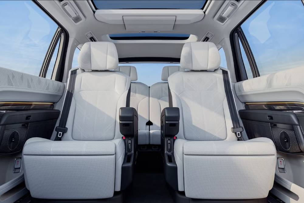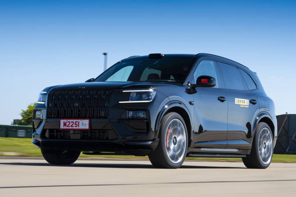 Κάτω από το κλασάτο αμάξωμα συναντάμε ένα plug-in υβριδικό σύνολο, αποτελούμενο από έναν 2.0λιτρο τετρακύλινδρο υπερτροφοδοτούμενο βενζινοκινητήρα και 3 ηλεκτροκινητήρες. To θερμικό μοτέρ παράγει 280 ίππους, ενώ η τριπλέτα των ηλεκτρικών μοτέρ χωρίζεται σε 505 + 505 + 395 άλογα, κατανέμοντας στους τέσσερις τροχούς συνολικά 1.401 ολόκληρα άλογα και 1.410 Nm ροπής! Δυο μπαταρίες είναι διαθέσιμες, 55,1 kWh ή 70 kWh, με τη μεγάλη να υπόσχεται 330 χλμ. ηλεκτρικής αυτονομίας και συνδυαστικά πάνω από 1.400 χλμ. δίχως να χρειαστεί ανεφοδιασμός ή φόρτιση. Εκπληκτικά νούμερα, αν και δεν θα πρέπει να ξεχνάμε ότι ανταποκρίνονται στον κινεζικό κύκλο CLTC. Αντίθετα, τα 3,0 δλ. για το 0-100 χλμ./ώρα και η ηλεκτρονικά περιοριζόμενη τελική των 230 χλμ./ώρα, θα είναι επαληθεύσιμα και στην Ευρώπη. Σε κάθε περίπτωση πάντως, μιλάμε για αριθμούς που ζαλίζουν, ιδίως όταν λάβουμε υπόψη πως πρόκειται για SUV πολύ άνω των 2,5 τόνων.