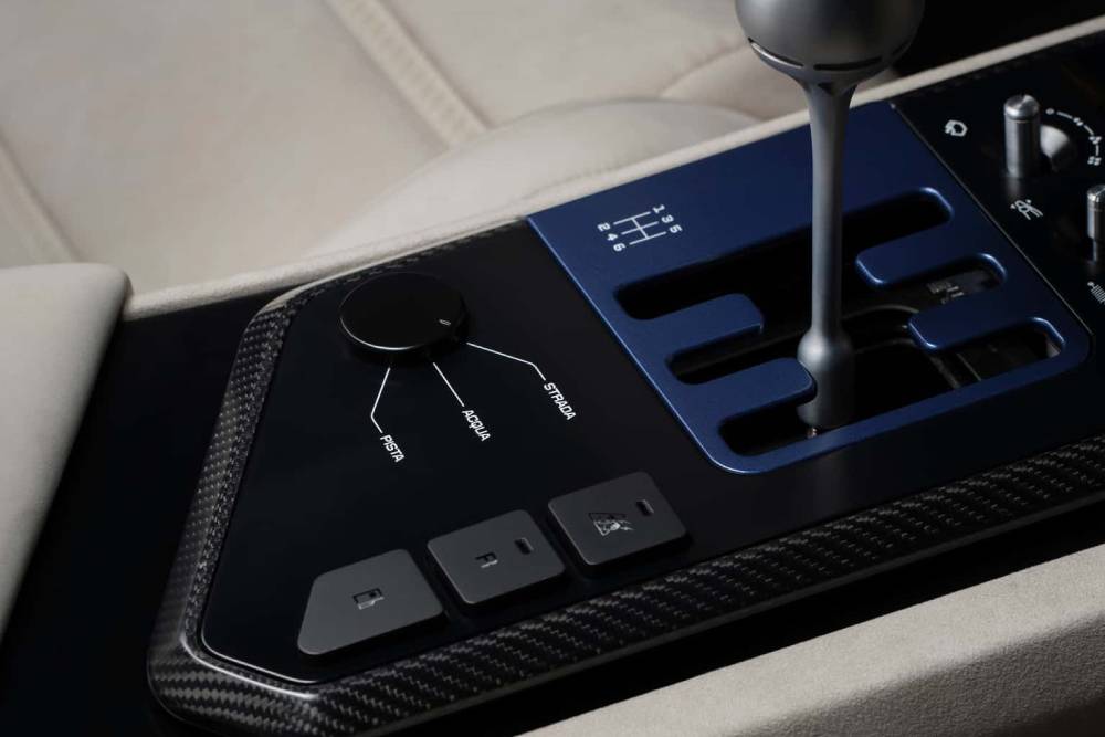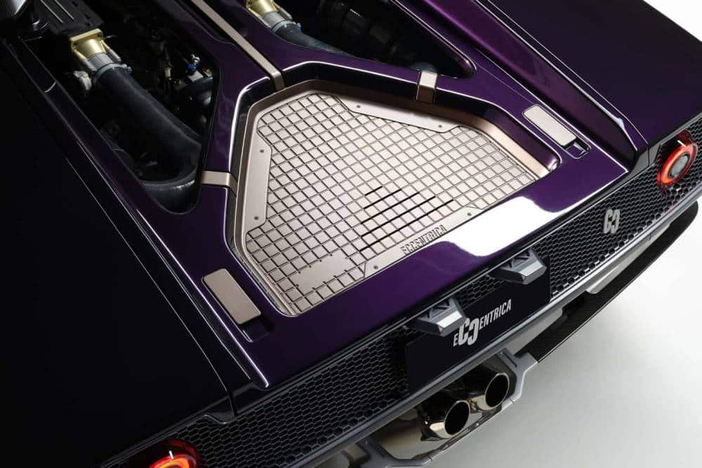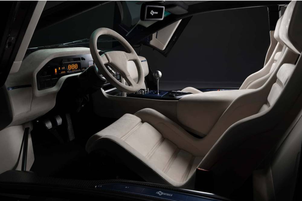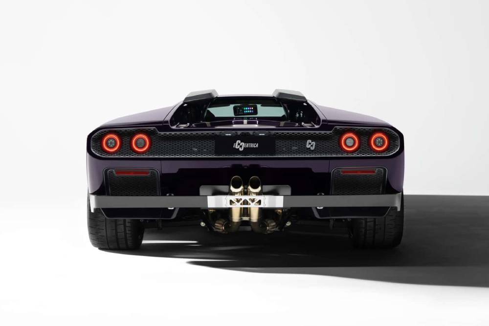Στο εσωτερικό κυριαρχεί η αγωνιστική αύρα, με το τριάκτινο τιμόνι και τον ψηφιακό πίνακα οργάνων να κεντρίζουν τα βλέμματα, όπως και τα μπάκετ καθίσματα με τον γενικά «σπαρτιάτικο» χαρακτήρα. Η Eccentrica δεν βάζει ούτε οθόνες, ούτε σύστημα πολυμέσων. Μόνο τα όργανα ελέγχου για τον κινητήρα και σύστημα κλιματισμού, οι αεραγωγοί του οποίου κρύβονται περίτεχνα σαν ραφές στο ταμπλό. Δέρμα και alcantara συνθέτουν τις επενδύσεις της καμπίνας, ενώ δεν λείπει ένα premium ηχοσύστημα της Marantz. Τι να το κάνεις, όμως, όταν ακριβώς πίσω σου υπάρχει ένας ατμοσφαιρικός V12 και πάνω από 500 άλογα;