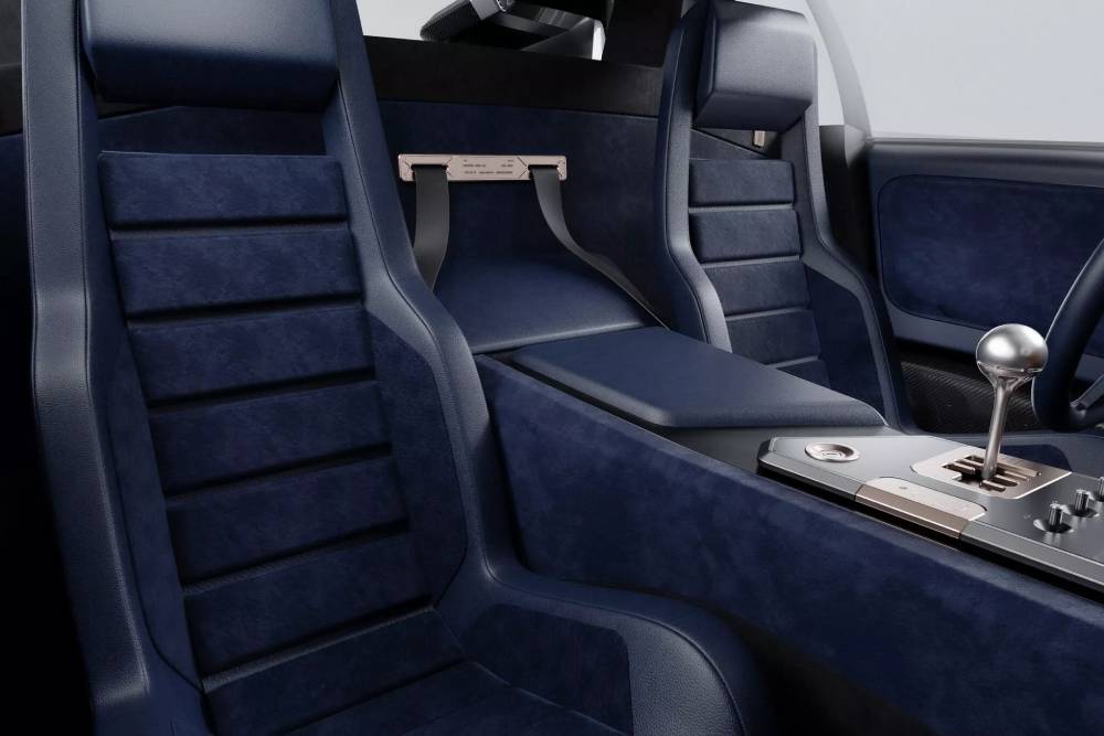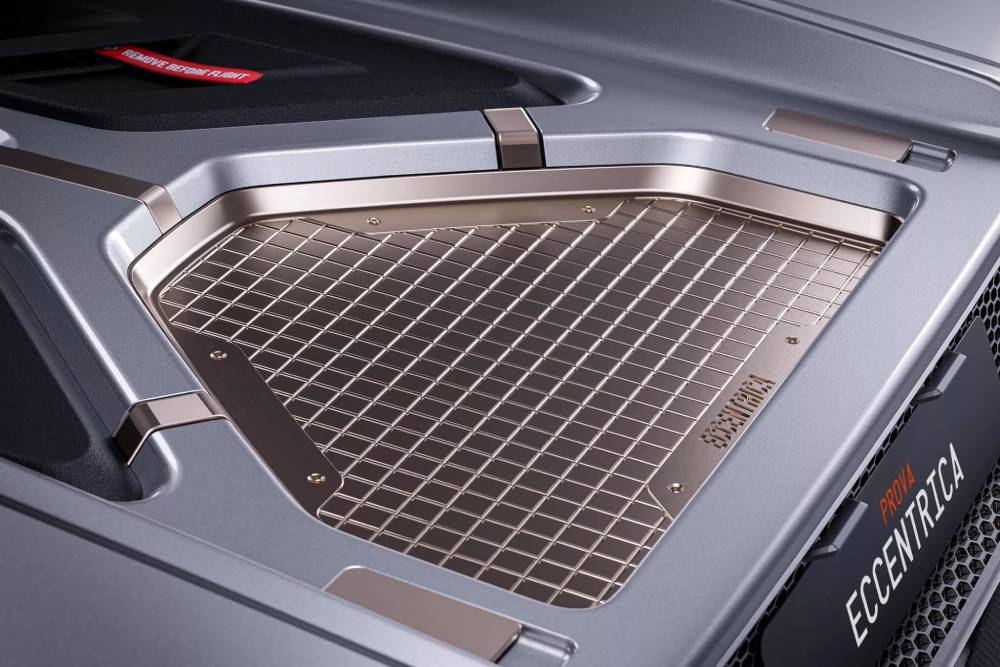 Στο εσωτερικό κυριαρχεί η αγωνιστική αύρα, με το τριάκτινο τιμόνι και τον ψηφιακό πίνακα οργάνων να κεντρίζουν τα βλέμματα, όπως και τα μπάκετ καθίσματα με τον γενικά «σπαρτιάτικο» χαρακτήρα. Η Eccentrica δεν βάζει ούτε οθόνες, ούτε σύστημα πολυμέσων. Μόνο τα όργανα ελέγχου για τον κινητήρα και σύστημα κλιματισμού, οι αεραγωγοί του οποίου κρύβονται περίτεχνα σαν ραφές στο ταμπλό. Δέρμα και alcantara συνθέτουν τις επενδύσεις της καμπίνας, ενώ δεν λείπει ένα premium ηχοσύστημα της Marantz. Τι να το κάνεις, όμως, όταν ακριβώς πίσω σου υπάρχει ένας ατμοσφαιρικός V12 και πάνω από 500 άλογα;