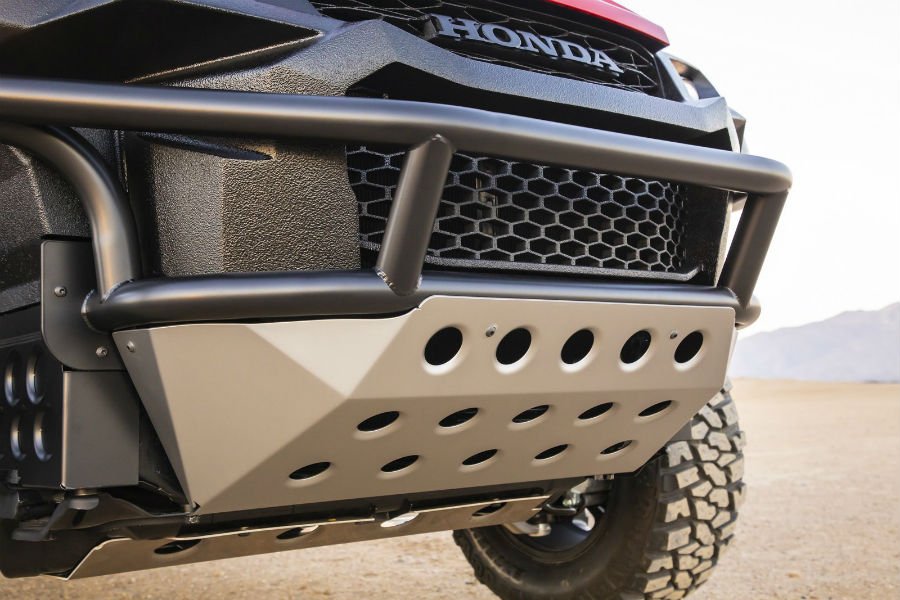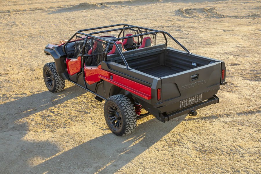 Το πάτωμα, ο κινητήρας και η μετάδοση προέρχονται από το Ridgeline, οπότε το Open Air Vehicle (όπως ονομάζεται η άποψη των Ιαπώνων για τα οχήματα στο στυλ Mad Max) έχει κάτω από το «πολεμικό» του αμάξωμα τον 3.5 V6 Earth Dreams των 280 ίππων και το ηλεκτρονικό σύστημα τετρακίνησης Intelligent VTM-4, τα οποία συνδυάζονται με 6τάχυτο αυτόματο κιβώτιο ταχυτήτων. Από εκεί και πέρα αναλαμβάνει την «δωρεά οργάνων» το Pioneer 1000, το All Terrain Vehicle από την μοτοσυκλετική γκάμα της Honda. Οι πόρτες, το τιμόνι και οι επενδύσεις στο εσωτερικό προέρχονται από την «γουρούνα», ενώ τα τέσσερα ξεχωριστά μπάκετ καθίσματα είναι προσφορά του Civic Type R.