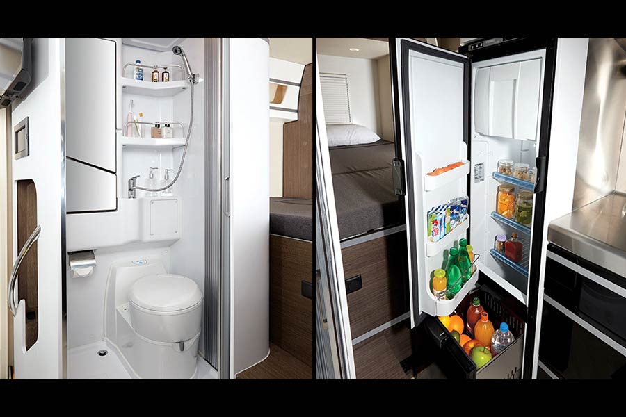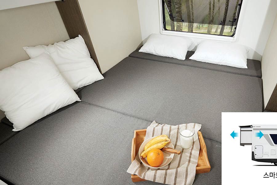 Πρόσθετα, πάνω από το χώρο του οδηγού υπάρχει ένα ακόμα κρεβάτι, συν αυτό που μπορεί να δημιουργηθεί με την ένωση των καναπέδων του σαλονιού. Στον εξοπλισμό του περιλαμβάνονται ακόμα κλιματισμός με Bluetooth, τηλεόραση, δύο δεξαμενές νερού 80 λίτρων εκάστη, θερμαινόμενο δάπεδο, κουζίνα, ψυγείο 150 λτ., ντουλάπια, τουαλέτα, ντους και όλα τα κομφόρ ενός σπιτιού, μέσα σε λίγα τετραγωνικά μέτρα.