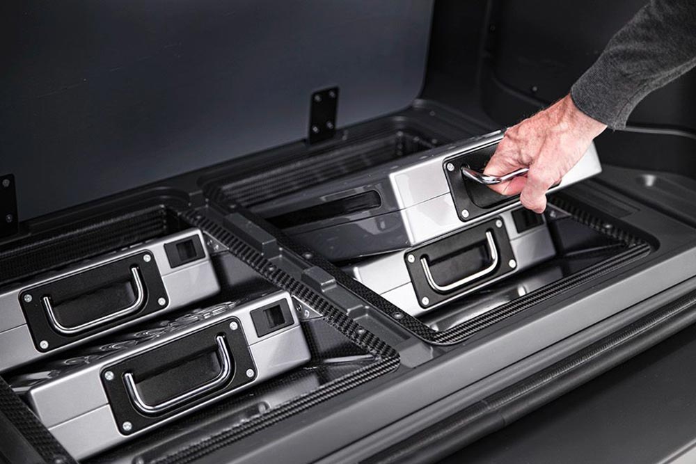 Με αυτό τον τρόπο επιτυγχάνεται καλύτερη αυτονομία. Για μια πλήρη φόρτιση όλων των μπαταριών χρειάζονται 5 ώρες σε ταχυφορτιστή ή 8 ώρες σε οικιακή πρίζα. Προαιρετικά μπορούν να τοποθετηθούν έξτρα μπαταρίες στην οροφή, αυξάνοντας τη συνολική αυτονομία στα 360 χλμ., από 240 χλμ.