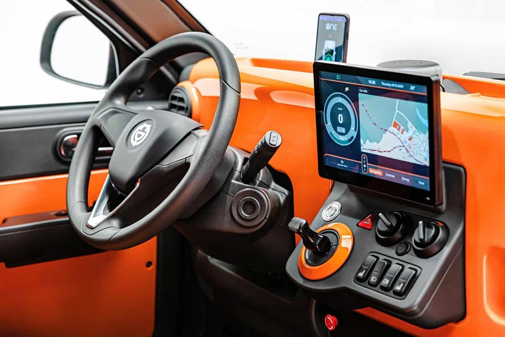 Σχεδιαστικά το αμάξωμα του City One μοιάζει σαν μια μεγάλη… βαλίτσα, ενώ στο πολύ λιτό εσωτερικό του υπάρχουν τα απολύτως απαραίτητα στην κεντρική κονσόλα μαζί με την οθόνη του infotainment. Στο προσαρμόσιμο εσωτερικό του χωρούν έως 5 επιβάτες με 400 λτ. για τις αποσκευές (προφανώς έως την οροφή). Αν πέσουν τα πίσω καθίσματα δημιουργείται ένας χώρος φόρτωσης 1.450 λίτρων για βάρη έως 380 κιλά.