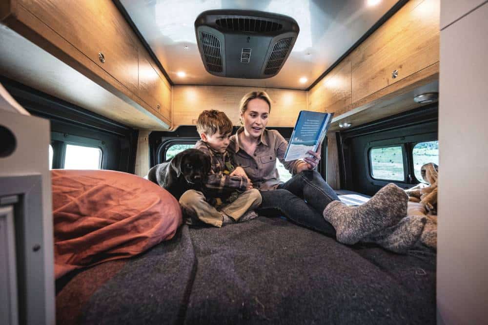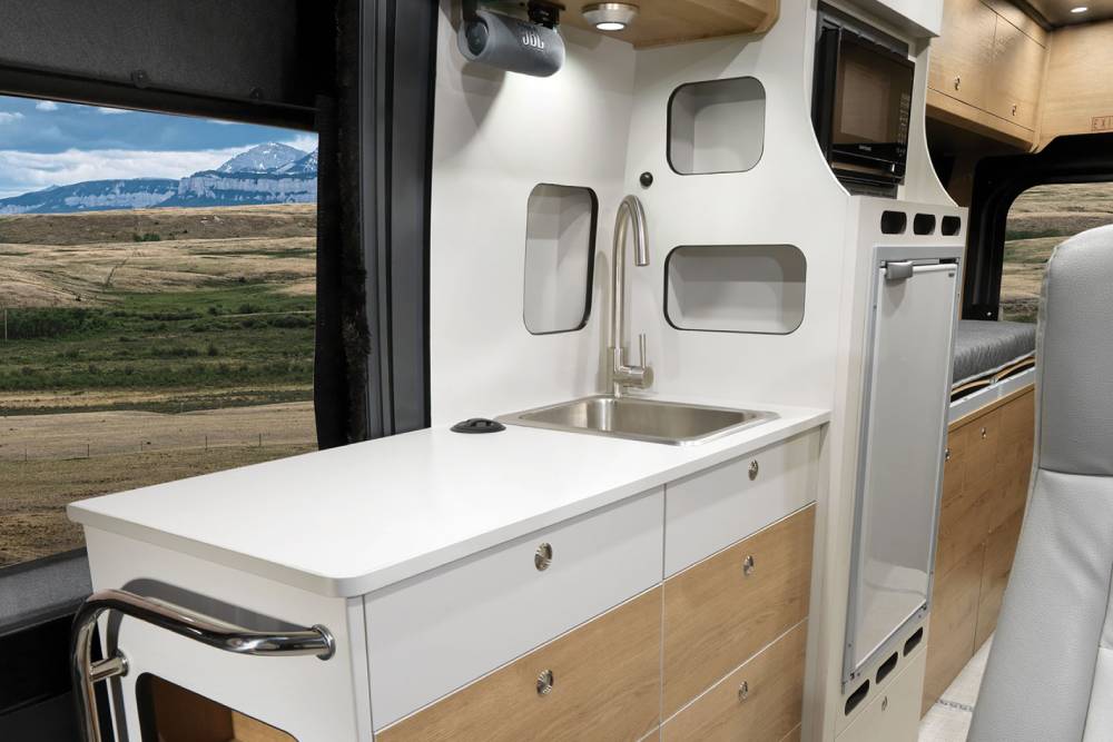 Αλλού, υπάρχουν ρυθμιζόμενα ράφια, ανασυρόμενο σκαλοπάτι και ενσωματωμένα μπολ τροφής και νερού για κατοικίδια, με τα τελευταία να αφαιρούνται και να προσφέρουν ακόμα ένα συρτάρι. Ντουλάπια και ράφια συναντάμε επίσης στην κρεβατοκάμαρα, η οποία αποτελείται από κρεβάτι 1.880 χλστ. μήκους και 1.327 χλστ. πλάτους, ικανό να υποδεχτεί δυο ενήλικες. Όσοι χρειάζονται περισσότερο χώρο μπορούν να παραγγείλουν ένα προαιρετικό pop-top, το οποίο αυξάνει την ικανότητα ύπνου σε τέσσερα άτομα, αλλά κοστίζει περισσότερο από 11.000 δολάρια (10.980 ευρώ).