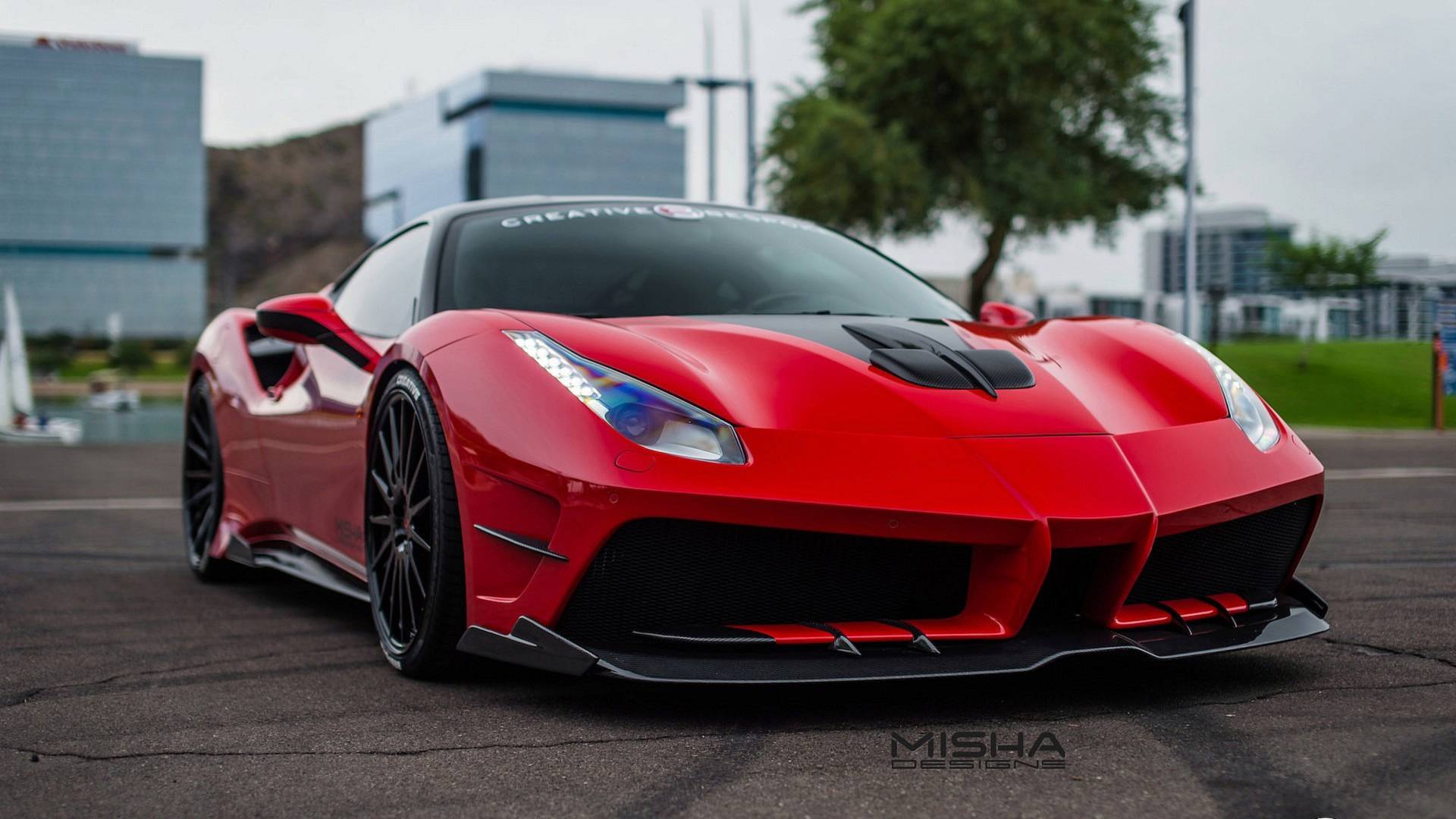 Για την ακρίβεια η Creative Beskope, η οποία πήρε το body kit που σχεδίασε η Misha Designs και το προσάρμοσε στην ιταλική «ονειροπαγίδα». Μάλιστα παρουσίασε 2 μοντέλα, για να έχουμε την δυνατότητα να διαλέξουμε. Τόσο η κόκκινη όσο και η λευκή 488 GTB φέρουν νέο splitter στον εμπρός προφυλακτήρα με ειδικά πτερύγια μορφοποίησης του αέρα, αναλόγου προσανατολισμού πλαϊνές ποδιές και πίσω διαχύτη με ολοφάνερες τις επιρροές από τον αντίστοιχο της εξωφρενικής 488 Pista. Nέο είναι και το spoiler δύο μερών στο χείλος του καλύμματος κινητήρα, που παραπέμπει στην διαμόρφωση της επικής LaFerrari. Φυσικά όλα τα ανωτέρω είναι κατασκευασμένα από ανθρακονήματα και κοστίζουν συνολικά 40.000 δολάρια.