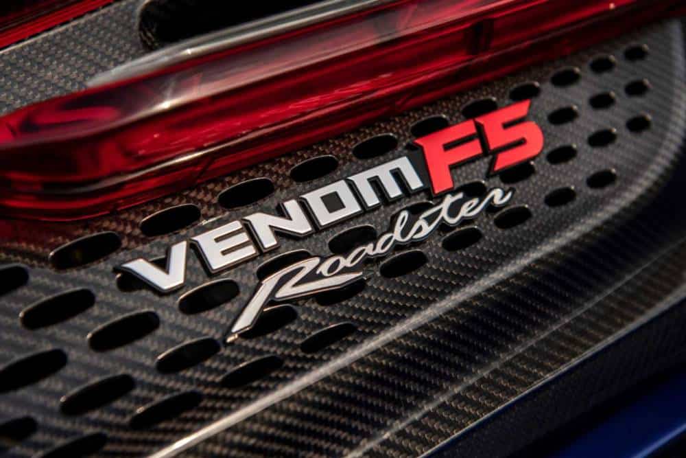 Το Venom F5 Roadster είναι κατά βάση πανομοιότυπο με το κλειστό, εξαιρώντας φυσικά το αφαιρούμενο ανθρακονημάτινο πάνελ (μόλις 8,1 κιλά το βάρος του) πάνω από τα κεφάλια των δυο επιβατών, που αποθηκεύεται σε ειδική τσάντα Merino. Σημαντική διαφοροποίηση και άνωθεν του κινητήρα, όπου τα αεροδυναμικά εξελιγμένα «στόρια» του κανονικού Venom δίνουν τη θέση τους σε διάφανο κάλυμμα (αντοχής σε θερμοκρασίες μέχρι 540 βαθμών Κελσίου), που παρέχει απρόσκοπτη θέα στα 6.6 λίτρα και τα διπλά τούρμπο του Fury V8. Το Roadster μπορεί να μην δείχνει την ίδια προσήλωση στο αποτέλεσμα με το κλειστό, όντας ελαφρώς πιο «τουριστικό», όμως όταν η βάση είναι για πάνω από 500 χλμ./ώρα τότε και πάλι δύνασαι να πετυχαίνεις ρεκόρ όλων των εποχών.