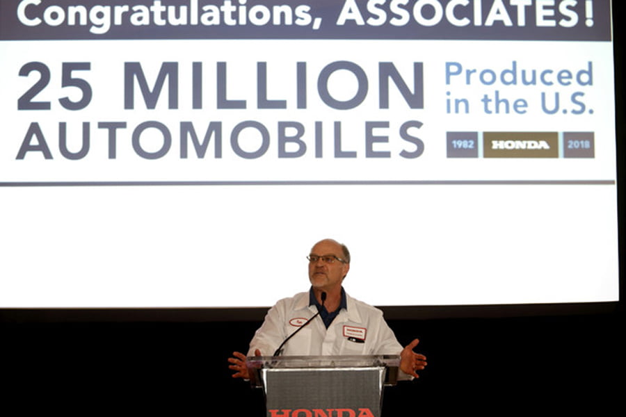 «Για 35 χρόνια η Honda συνδέεται με την Αμερική και επικεντρωνόμαστε στην κατασκευή υψηλής ποιότητας οχημάτων για τους πελάτες μας. Αυτό το επίτευγμα αντιπροσωπεύει 25 εκατομμύρια πελάτες, οι οποίοι έδειξαν πίστη στη Honda και εμείς θα συνεχίσουμε να τιμούμε αυτή τη σχέση μαζί τους, εστιάζοντας να πετύχουμε υψηλότερα επίπεδα ποιότητας και καινοτομίας στα επόμενα 25 εκατομμύρια αυτοκίνητα», επισήμανε ο Tom Shoupe, Εκτελεστικός Αντιπρόεδρος της Honda Αμερικής.