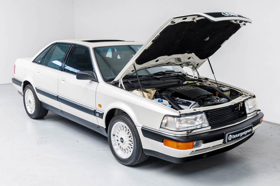 Πληθωρικό σε κάθε επίπεδο, το Audi V8 αποτελούσε τη ναυαρχίδα της γερμανικής μάρκας, από το 1988 έως το 1993, ενώ κατασκευάστηκε σε 21.000 αντίτυπα. Σήμερα, αν τύχει ποτέ και το αντικρύσει κανείς, θα είναι σαν να βλέπει φάντασμα μπροστά του, αφού τα καλοδιατηρημένα είναι μετρημένα στα δάκτυλα. Το εικονιζόμενο όμως, θα μπορούσε κάλλιστα να βρίσκεται στο μουσείο της Audi και όχι σε εμπορία μεταχειρισμένων αυτοκινήτων.
