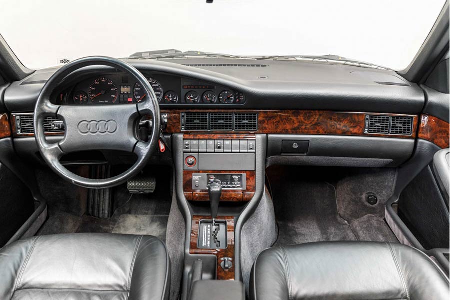 Πληθωρικό σε κάθε επίπεδο, το Audi V8 αποτελούσε τη ναυαρχίδα της γερμανικής μάρκας, από το 1988 έως το 1993, ενώ κατασκευάστηκε σε 21.000 αντίτυπα. Σήμερα, αν τύχει ποτέ και το αντικρύσει κανείς, θα είναι σαν να βλέπει φάντασμα μπροστά του, αφού τα καλοδιατηρημένα είναι μετρημένα στα δάκτυλα. Το εικονιζόμενο όμως, θα μπορούσε κάλλιστα να βρίσκεται στο μουσείο της Audi και όχι σε εμπορία μεταχειρισμένων αυτοκινήτων.