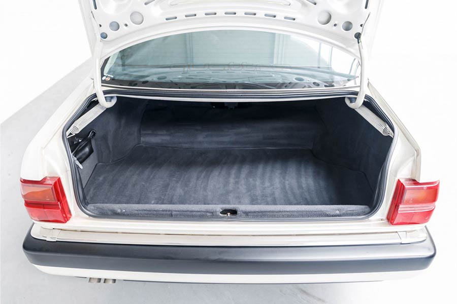 Το επιβλητικό του αμάξωμα έχει μήκος 4.874 χλστ., πλάτος 1.814 χλστ., ύψος 1.420 χλστ., μεταξόνιο 2.703 χλστ. και βάρος 1.710 κιλά. Το λευκό περλέ του χρώμα έχει διατηρηθεί τέλεια, όπως και το πολυτελές εσωτερικό με τις επενδύσεις δέρματος και ξύλου. Στον εξοπλισμό του διαθέτει όλες τις γνωστές ηλεκτρικές ανέσεις συν ηλεκτρικά ρυθμιζόμενα καθίσματα, αυτόματο κλιματισμό, ηλιοροφή, κουρτινάκια στα πίσω παράθυρα, ζάντες αλουμινίου, το σύστημα procon-ten, θερμαινόμενα εμπρός – πίσω καθίσματα, ABS κ.λπ. Το μόνο που ήταν εξτρά και δεν τοποθετήθηκε ποτέ είναι το ηχοσύστημα.