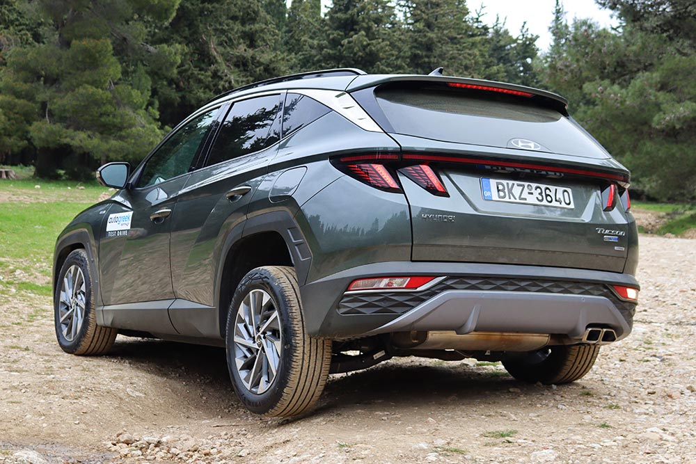 Το νέο Hyundai Tucson με το πολύ δυναμικής αισθητικής πληθωρικό του αμάξωμα, κοστίζει από 28.090 ευρώ, όταν αντίπαλα μικρομεσαία SUV στοιχίζουν από 30.000 ευρώ και άνω. Από την πρώτη έκδοση 1.6 T-GDi 48V Hybrid 150 hp Exclusive προσφέρει αρκετή δύναμη, υβριδική τεχνολογία και φουλ στάνταρ εξοπλισμό. Συγκεκριμένα διαθέτει τα εξής: