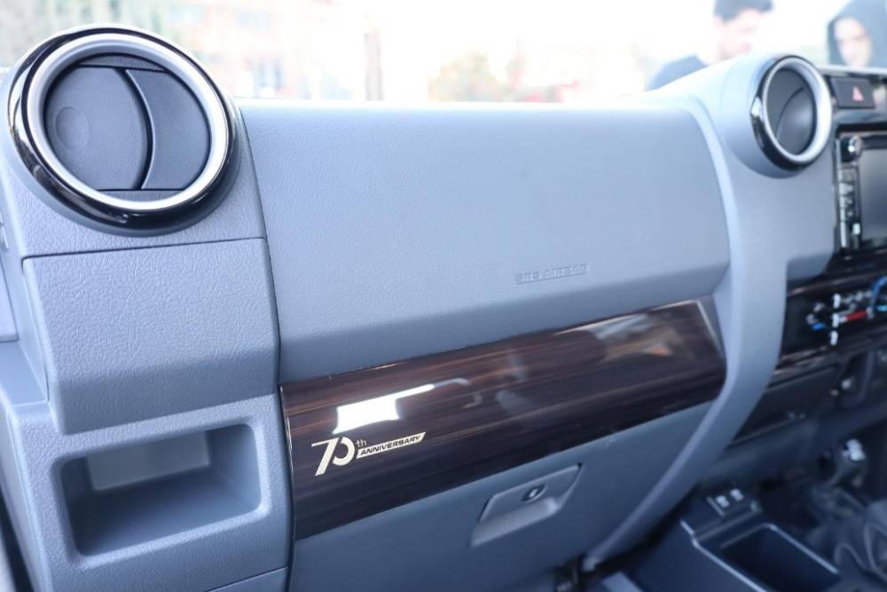 Όποιος ενδιαφέρεται για το εν λόγω Land Cruiser 70, θα πρέπει αφενός να το φέρει από την Αυστραλία και αφετέρου να επενδύσει 139.900 τοπικών δολαρίων (86.511 ευρώ). Με αυτά τα χρήματα αγοράζεις ένα συλλεκτικό τετράτροχο, με V8 ντίζελ 4.5 λίτρων απόδοσης 205 ίππων στις 3.400 σ.α.λ. και 430 Nm στις 1.200-3.200 σ.α.λ., φυσικά τετρακίνηση με μπλοκέ διαφορικά και βοηθητικό κιβώτιο, αλλά και κορυφαίες εκτός δρόμου δυνατότητες (235 χλστ. απόσταση από το έδαφος, γωνία προσέγγισης 33 μοίρες και διαφυγής 27°)