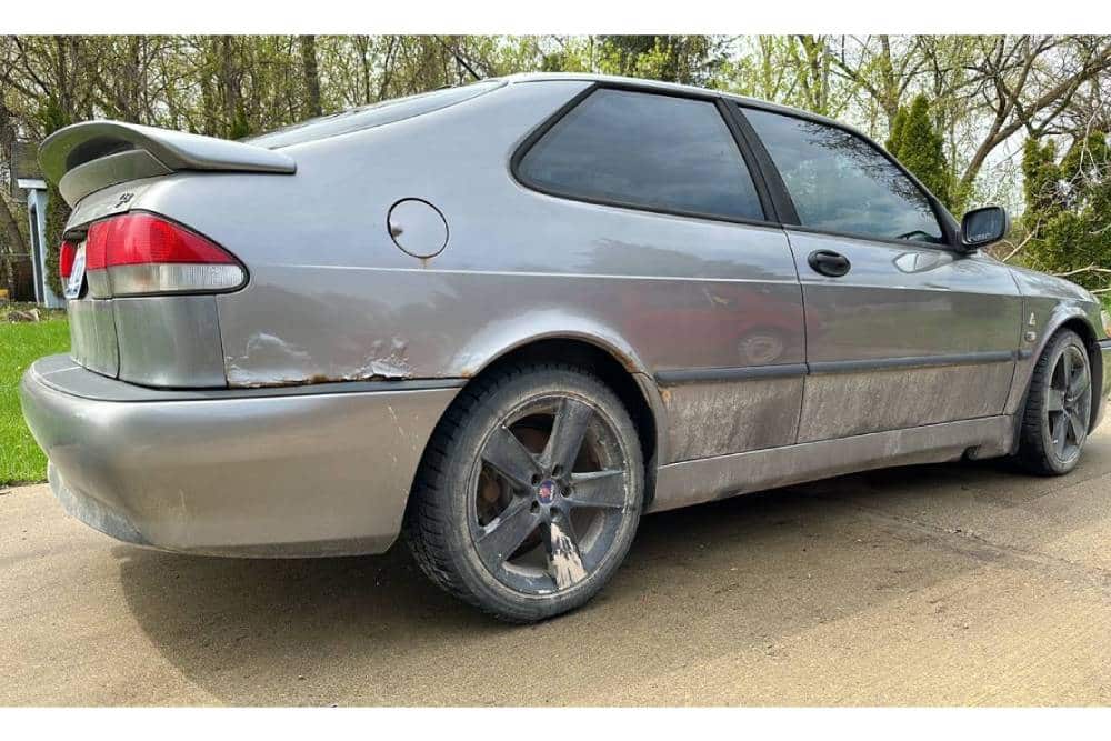 Το 9-3 Viggen ακόμα σήμερα μπορεί να προβληματίσει με τις επιδόσεις του πολύ πιο σύγχρονα αυτοκίνητα, αποτελώντας ένα από τα αγαπημένα μοντέλα των φίλων της Saab. Όπως αποδεικνύει ο συγκεκριμένος, επιλέγουν να τα οδηγούν αντί να τα έχουν για καμάρι. Το Viggen που βλέπουμε είναι από τις τελευταίες «φουρνιές» του 2002, έχοντας συμπληρώσει ως στιγμής 434.522 χλμ.! Το λερωμένο παρουσιαστικό κόβει βαθμούς από την εμφάνιση του αμαξώματος, το οποίο ούτως ή άλλως είναι ταλαιπωρημένο, όμως η περιγραφή της αγγελίας αναφέρει πως είναι σχολαστικά συντηρημένο και ελαφρώς βελτιωμένο, με ένα πρώτο στάδιο και ισχύ 260 ίππων. Πολύ ενδιαφέρουσα πρόταση, που γίνεται ακόμα πιο ενδιαφέρουσα από την τιμή των 4.000 δολαρίων (3.733 ευρώ).