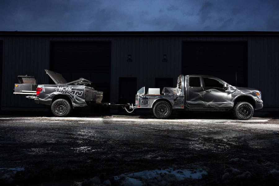 Η Nissan παρουσίασε το Smokin Titan το οποίο διαθέτει ρυμουλκούμενο μπάρμπεκιου, με ενσωματωμένη ψησταριά και μια πλήρως λειτουργική κινητή κουζίνα, συμπεριλαμβανομένου του νεροχύτη. Έτσι μπορείς να παίρνεις μαζί σου την ψησταριά όπου και αν πας και να κάνεις τα αγαπημένα σου φαγητά, ακόμη και αν είσαι επαγγελματίας ψήστης.