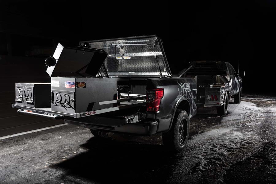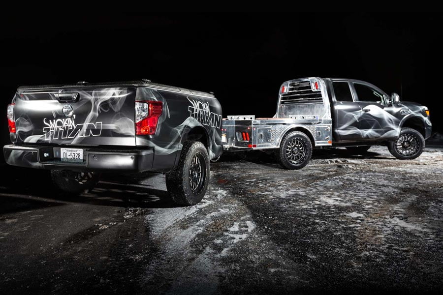 Η μεταποίηση του Nissan Smokin Titan ξεκίνησε με την προσθήκη μιας αλουμινένιας πλατφόρμας της CM Truck Beds, επιτρέποντας τη δημιουργία χώρου για τρεις σταθμούς προετοιμασίας φαγητού. Kάθε ένας από αυτούς διαθέτει μια εστία διπλού καυστήρα από αλουμίνιο της Partner Steel, μαζί με μια πλάκα κοπής της Churrasco Brazilian Wood. Ένας προσαρμοσμένος επί του φορτηγού νεροχύτης 24×24 της Teton Steel, καθώς και ένα σύστημα αποθήκευσης νερού είναι εύκολα προσβάσιμα από την πλατφόρμα. Το αυτόνομο σύστημα νεροχύτη και νερού μπορεί να αντικατασταθεί από ψυγείο. Εκμεταλλευόμενο το επίπεδο δάπεδο του Titan στη δεύτερη σειρά της έκδοσης King Cab, ένας ψυγείο-καταψύκτης ARB με διαχωριστικό, βρίσκει την ιδανική θέση του ακριβώς στο σημείο των πίσω καθισμάτων, μαζί με ένα ειδικής κατασκευής ράφι μπαχαρικών.