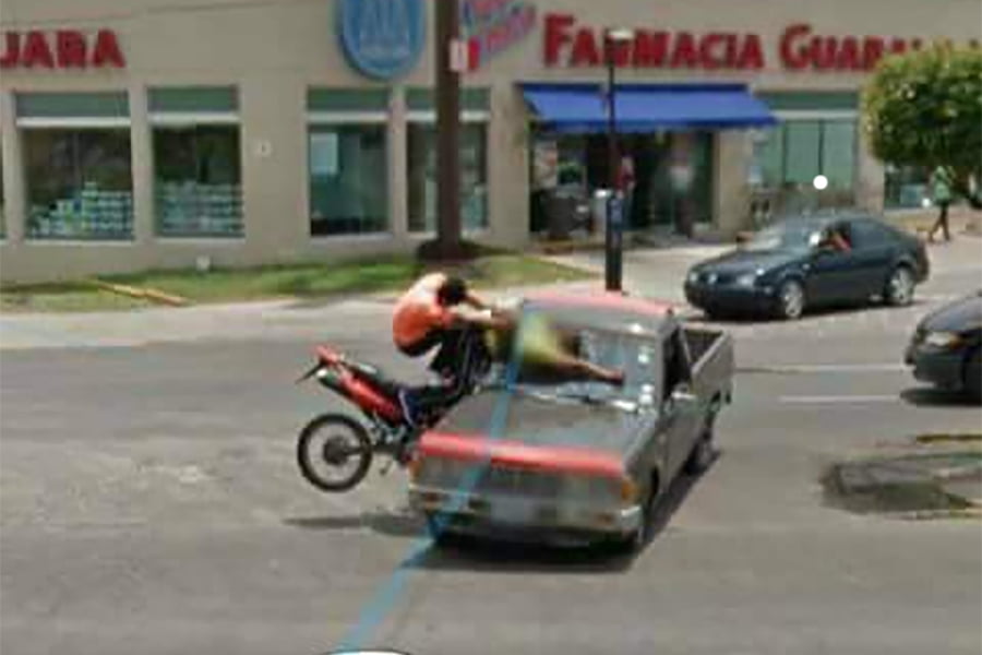 Κατά καιρούς οι εικόνες του Google Maps μας έχουν δώσει τροφή για απίστευτα άρθρα. Μερικές τέτοιες εικόνες ήλθαν ξανά στο φως της δημοσιότητας, αυτή τη φορά από το Μεξικό! Πιο συγκεκριμένα τα ραντάρ κατέγραψαν ένα τροχαίο που έγινε στην πόλη Tlaquepaque του Μεξικό, όπου ένα μηχανάκι έπεσε με δύναμη πάνω σε ένα pick up.