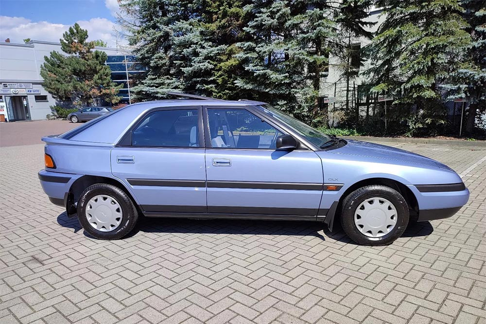 Το συγκεκριμένο Mazda 323F του 1990 έχει παραμείνει καινούργιο όλα αυτά τα χρόνια, αφού το κοντέρ του έχει γράψει μόνο 603 χιλιόμετρα! Αγοράστηκε από αντιπρόσωπο της Mazda στην Ελβετία και έκτοτε παραμένει παρκαρισμένο σε εσωτερικό χώρο. Για αυτό άλλωστε το όμορφο αμάξωμά του με το γαλάζιο μεταλλικό χρώμα δεν έχει σκουριές και το εσωτερικό του με τις ασορτί μπλε βελούδινες επενδύσεις (δεν υπάρχουν πια σε νέα αυτοκίνητα) είναι τελείως καινούργιο.