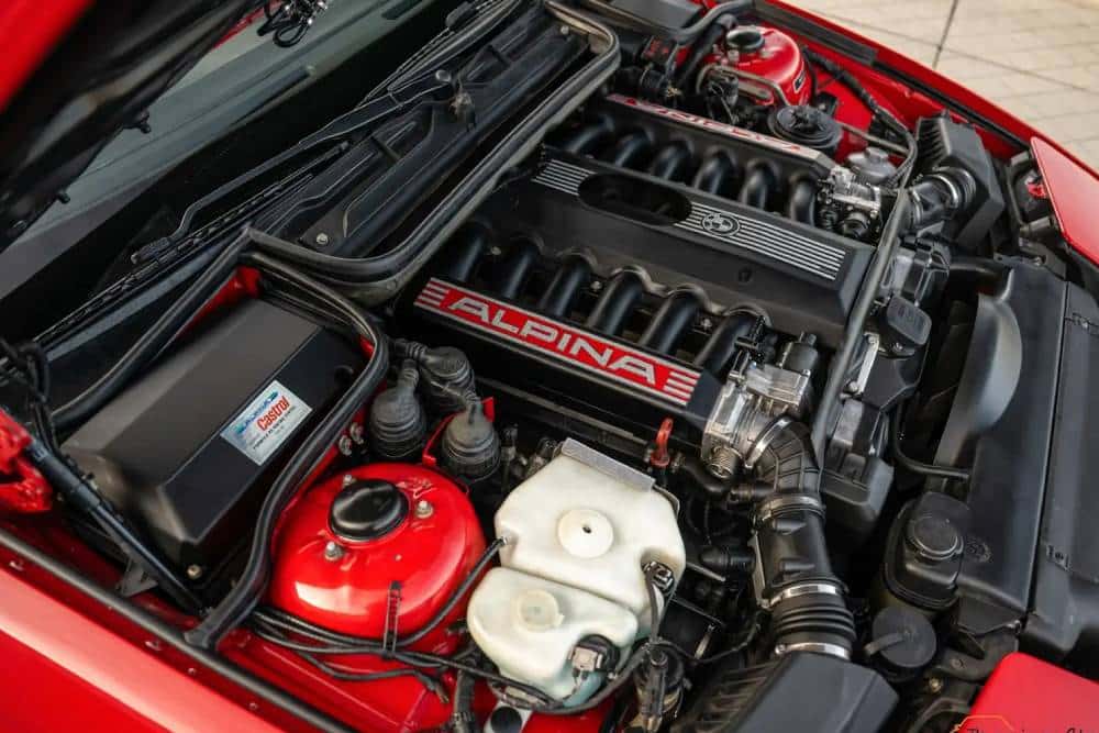 Πέρα από τον κινητήρα, βελτιώσεις υπάρχουν στη ανάρτηση και το στήσιμο της B12 5.0 Coupe, με τις χαρακτηριστικές ζάντες της Alpina να περιβάλλονται από ελαστικά 245/40/18 εμπρός και 285/35/18 πίσω. Μόλις 57 B12 5.0 Coupe κατασκευάστηκαν, με τη συγκεκριμένη να ντύνεται στο φλογερό και σπάνιο Sonderlack Ferrari Red χρώμα και να συνθέτει έναν εξαίρετο συνδυασμό με τα χρυσαφί αυτοκόλλητα. Από το 1992, όταν πέρασε για πρώτη φορά τις πύλες του εργοστασίου, έχει διανύσει 160.634 χλμ., οπότε ευτυχώς δεν έχουμε να κάνουμε με ένα αυτοκίνητο κλειδαμπαρωμένο στο γκαράζ. Όσοι ενδιαφερόμενοι θα πρέπει να εκταμιεύσουν κοντά στις 280.000 ευρώ (279.950, μένει ένα 50άρικο ρέστα για βιολογικό καθαρισμό), που απαιτούνται για την αγορά της.