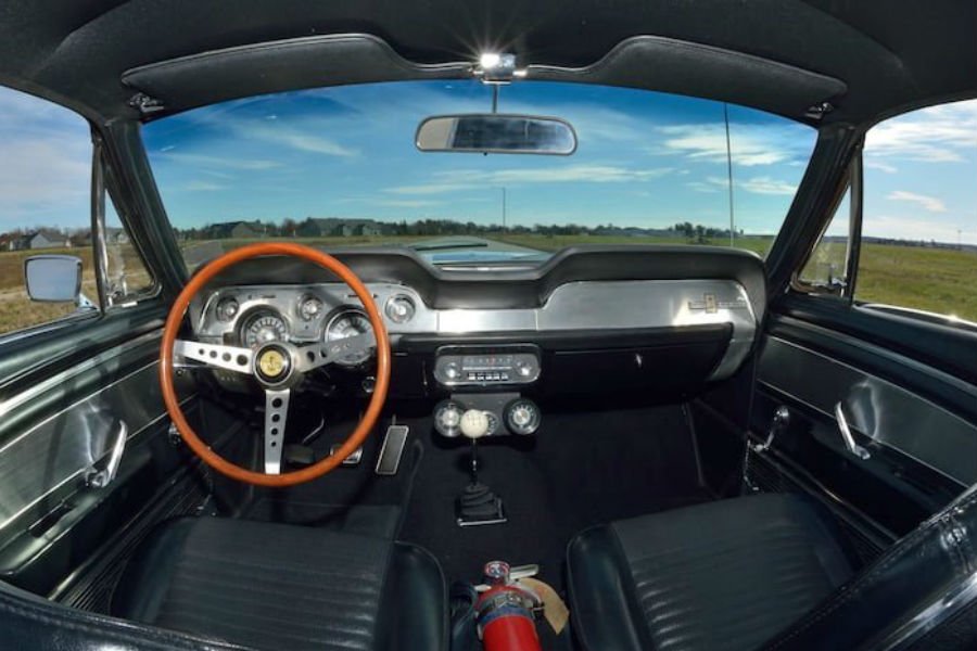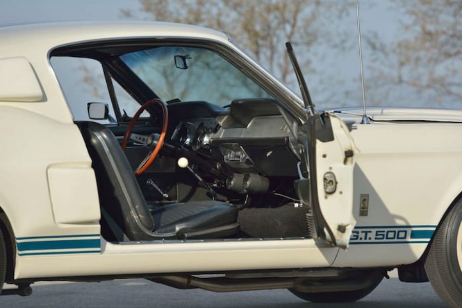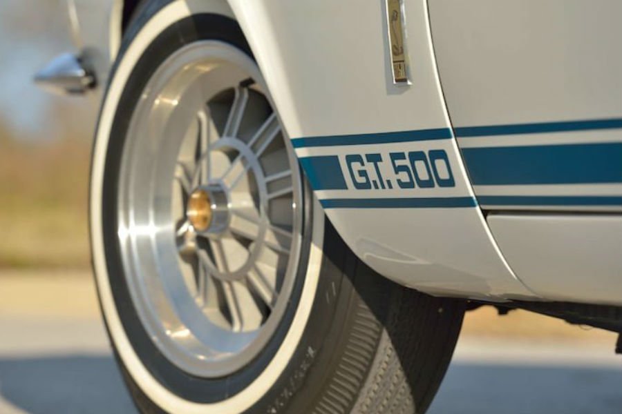 Η Mustang που μας αφήνει άφωνους στις φωτογραφίες δεν έχει όμοια στον πλανήτη, καθώς κατασκευάστηκε από τον Caroll Shelby το 1967 προκειμένου να συμμετάσχει σε ένα προωθητικό event της Goodyear, το οποίο περιλάμβανε τεστ αντοχής υψηλής ταχύτητας για το τότε μοντέλο της Thunderbolt. Η GT500 Super Snake, όπως είναι η πλήρης ονομασία της, έχει κάτω από το καπό της τον 427 V8 κινητήρα των 6.9 λίτρων που συναντάμε στο GT40 -αλλά και την Cobra– και αποδίδει 520 ίππους, χαρίζοντας στο θεσπέσιο pony car τελική 274 χλμ./ώρα. Μάλιστα, στο τεστ της Goodyear, η Super Snake κατάφερε μέση ωριαία της τάξης των 229 χλμ./ώρα σε μια απόσταση 805 χιλιομέτρων, η οποία βέβαια έγινε στην ανάλογη κυκλική πίστα.