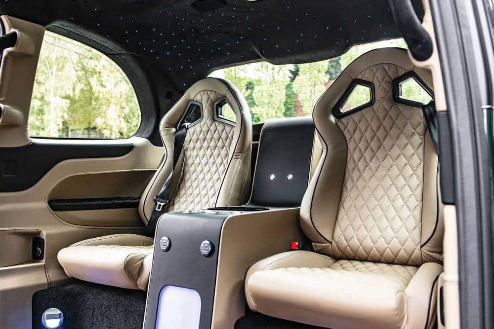 Από το γαλλογερμανικό hypercar εμπνέεται ο σχεδιασμός των μπάκετ καθισμάτων, τα οποία απολαμβάνουν και οι πίσω επιβάτες, ενώ η έναστρη οροφή μιμείται εκείνες των βρετανικών λιμουζινών. Οι πολυτέλειες περιλαμβάνουν θερμαινόμενες/ψυχόμενες ποτηροθήκες, ενώ προαιρετικά μπορεί να τοποθετηθεί μέχρι σαμπανιέρα ανάμεσα στα πίσω καθίσματα. Ο ambient φωτισμός, η ασύρματη φόρτιση smartphone και οι πρόσθετες θύρες USB δεν μπορούν να λείπουν από ένα σύγχρονο αυτοκίνητο του 2022, κι ας θυμίζει εξωτερικά τετράτροχα από τη δεκαετία του 50.