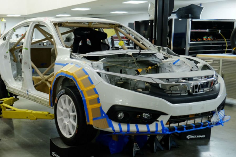 Eξωτερικά θυμίζει κράμα Civic Sedan με τα αγωνιστικά που παίρνουν μέρος στο Βρετανικό και Παγκόσμιο Πρωτάθλημα Τουρισμού. Τα φτερά εμπρός-πίσω έχουν «ξεχειλώσει» και την αεροδυναμική καθοδήγηση αναλαμβάνουν ένα μεγάλο splitter στον εμπρός προφυλακτήρα και μια θεόρατη αεροτομή στην πόρτα του πορτμπαγκάζ. Μέχρι εδώ θα μπορούσαμε να μιλάμε απλά για ένα βελτιωμένο αυτοκίνητο, χωρίς καν να υπάρχει κάποια μηχανική μετατροπή. Όμως στο συγκεκριμένο Civic έχει «πέσει» πολλή μελέτη κάτω από το αμάξωμα.