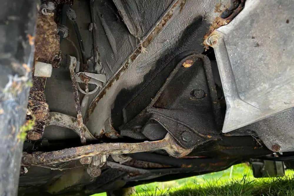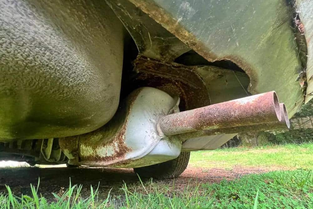 Ευτυχώς βρέθηκε κάποιος να την ανακαλύψει, δυο δεκαετίες μετά τον εγκλεισμό της. Η κατάσταση του αμαξώματος είναι αυτή που θα περίμενες, με πολλά σημεία να καλύπτονται από σκουριά. Το εσωτερικό είναι σαφώς πιο μάχιμο, αν εξαιρέσεις τις αράχνες που έχει πιάσει και την πολλή βρωμιά. Παρόλα αυτά ούτε σκισίματα εμφανίζονται στα δερμάτινα καθίσματα, ούτε σπασίματα στο ταμπλό, ούτε βλέπεις να κρέμονται καλώδια.