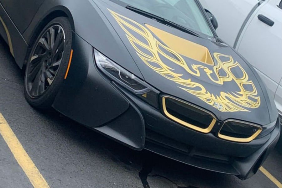 Ένας Αμερικανός αποφάσισε να αναβαθμίσει αισθητικά το βαυαρικό του καμάρι, ντύνοντάς το σε μαύρη ματ μεμβράνη, συνοδεία χρυσαφί αυτοκόλλητων σε αμάξωμα και ζάντες. Αυτό που «βγάζει μάτι» ωστόσο, είναι ένα επίσης χρυσαφί πτηνό στο πορτμπαγκάζ (το i8 είναι κεντρομήχανο, οπότε μπροστά υπάρχει ο χώρος αποσκευών). Και δεν είναι άλλο από τον «Φοίνικα», της εμβληματικής Pontiac Trans Am – άλλως γνωστή ως Firebird!