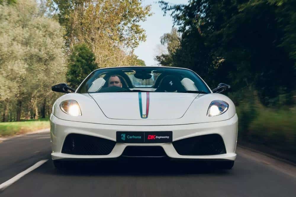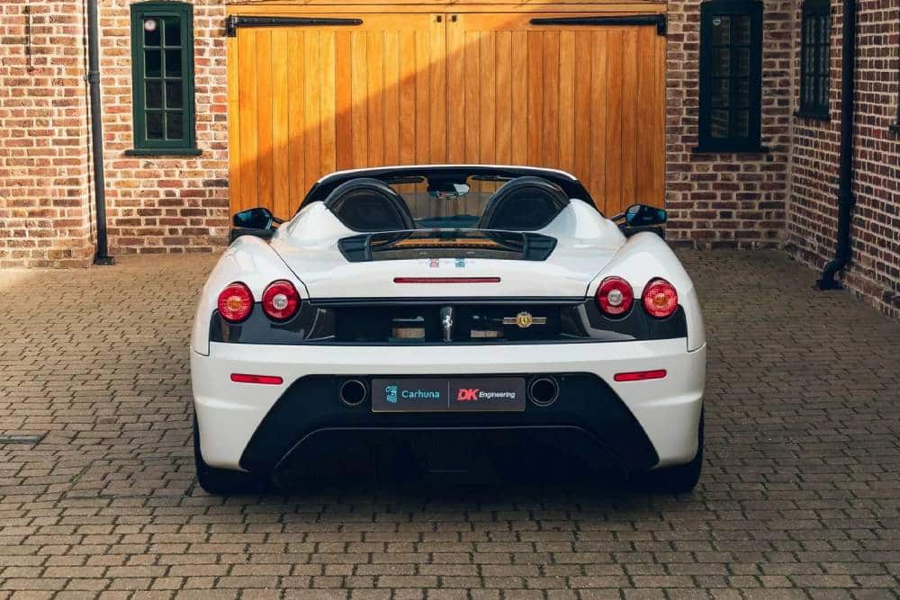 Καταρχάς αυτή δεν είναι μια απλή Scuderia Spider, από το εργοστάσιο κιόλας. Η συγκεκριμένη πρόκειται για μια από τις ελάχιστες 16Μ, που κατασκευάστηκαν για τους εορτασμούς της κατάκτησης του 16ου πρωταθλήματος Κατασκευαστών («M» όπως «Manufacturers») της κανονικής Scuderia, στη Formula 1. Το 2008 άνοιξαν οι εν λόγω σαμπάνιες στο Μαρανέλο, με τη Scuderia Spider 16M να κυκλοφορεί σε μόλις 48 κομμάτια στη Μεγάλη Βρετανία, από όπου προέρχεται η εικονιζόμενη. Μια από αυτές, η προνομιούχα ενώπιον μας, αγοράστηκε από τον σταρ -και γνωστό petrolhead- των Jamiroquai, Jay K. Από αυτές τις 48, μόνο 4 φόρεσαν το Bianco White «κοστούμι».