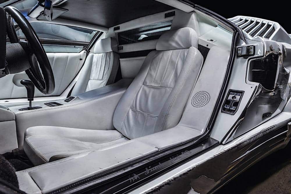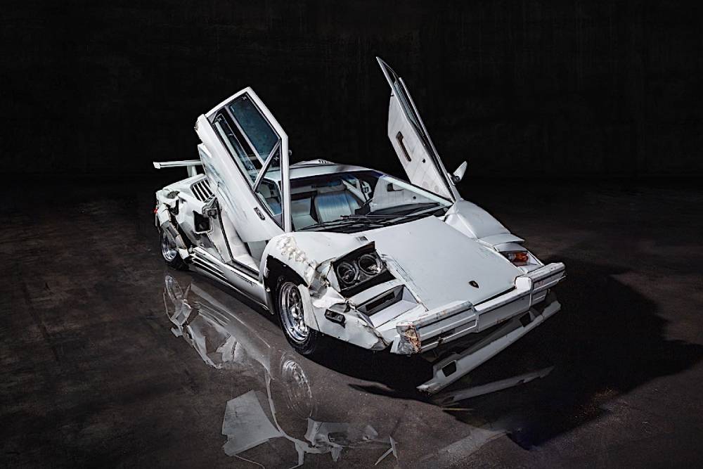 Αυτή η πολύπαθη Ιταλίδα βγαίνει σε δημοπρασία, με την εκτιμώμενη τιμή ωστόσο να παραπέμπει σε ολοκαίνουργιο και ατρακάριστο δείγμα. Για τις ανάγκες της ταινίας χρησιμοποιήθηκαν δυο Countach 25th Anniversary, εκ των μόλις 12 που είχαν πάει στην Αμερική των 80’s βαμμένες στο λευκό Bianco Polo. Η μία (επίσης σε δημοπρασία πριν λίγους μήνες) έμεινε αλώβητη. Η άλλη, όμως, αναγκάστηκε να τραβήξει τα πάνδεινα. Η στραπατσαρισμένη της μορφή μπροστά και στο πλάι δεν είναι εφέ. Πραγματικά τράκαρε σε τοίχους και άλλα αυτοκίνητα, σε μια από τις ακριβότερες σκηνές της ταινίας
