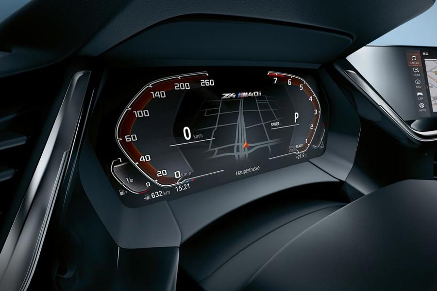 Αυτή τη φορά όμως βλέπουμε και κάποιες εικόνες από το εσωτερικό. Σε αυτές διακρίνεται ο νέος, ψηφιακός πίνακας οργάνων της BMW Z4, που για πρώτη φορά θα είναι χωρίς κυκλικά όργανα, ενώ βλέπουμε νέο τιμόνι και νέα κονσόλα με θέση για ασύρματη φόρτιση κινητού.