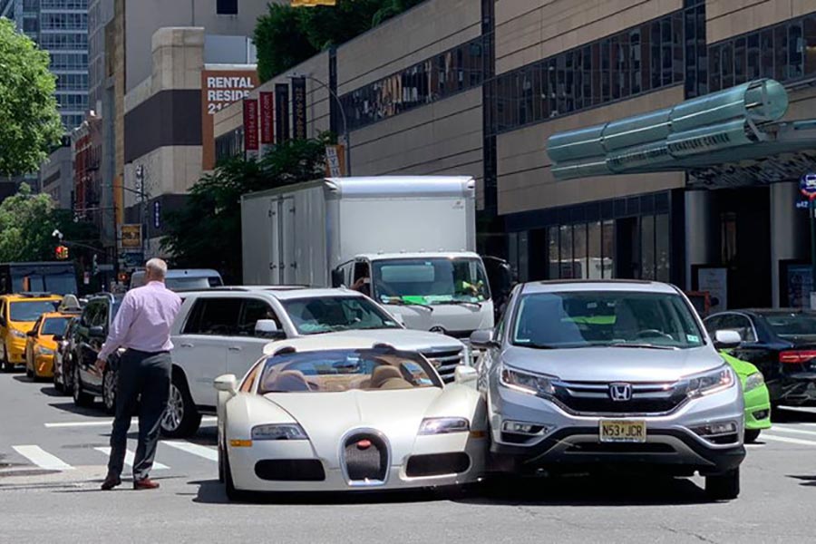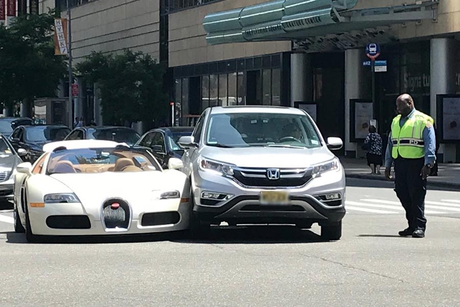 Γιατί όπως βρισκόταν στην περιοχή Hells Kitchen της Νέας Υόρκης, ενεπλάκη σε ατύχημα με ένα ασημί Honda CR-V, το οποίο οδηγούσε μια κυρία. Σύμφωνα με τις αρχές τα δυο αυτοκίνητα ακούμπησαν στα φτερά όπως έστριβαν στο φωτεινό σηματοδότη. Βέβαια η ζημιά θα είναι μικρή για το CR-V, για το οποίο και ανταλλακτικά υπάρχουν και σε προσιτή τιμή βρίσκονται, εν αντιθέσει με της Bugatti Veyron Grand Sport τα οποία είναι σπάνια και όπως αντιλαμβάνεστε κοστίζουν!