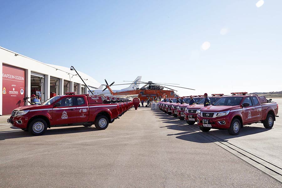 Ο στόλος των οχημάτων του Πυροσβεστικού Σώματος ενισχύθηκε με 20 νέα υδροφόρα πυροσβεστικά Nissan Navara, με δεξαμενή νερού χωρητικότητας 500 λτ. Πρόκειται για μια δωρεά αξίας σχεδόν 1 εκατομμυρίου ευρώ, της εταιρείας ΠΑΠΑΣΤΡΑΤΟΣ Α.Β.Ε.Σ. με την υποστήριξη της Ελληνικής Ομάδας Διάσωσης (Ε.Ο.Δ.).