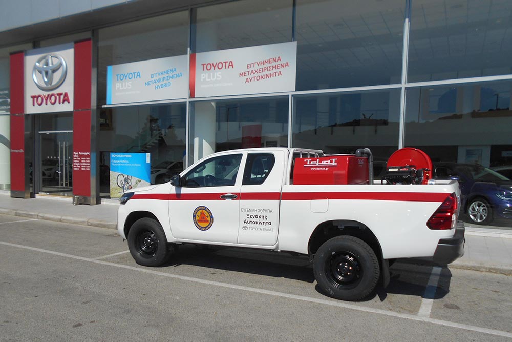 Το συγκεκριμένο όχημα παραδίδεται σήμερα στους Εθελοντές έτοιμο προς χρήση, αφού ήδη η ΤΕΜΑΞ ΑΕ έχει εξοπλίσει το Toyota Hilux με ένα σύγχρονο αυτόνομο συγκρότημα πυρόσβεσης. Αυτό διαθέτει ειδικό πλαίσιο, εγκατεστημένη δεξαμενή χωρητικότητας 600 λίτρων με χαμηλό κέντρο βάρους, αντλία νερού με κινητήρα και πιστόλι διασποράς νερού.