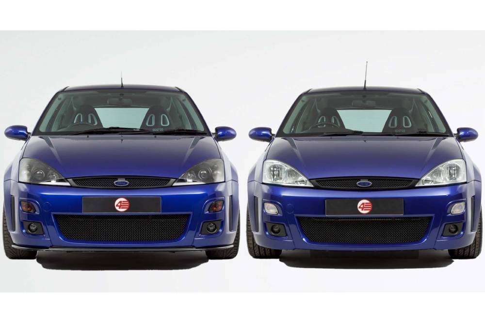 Μια βρετανική αντιπροσωπεία μεταχειρισμένων έχει το προνόμιο να διαθέτει δυο Focus RS, στο Imperial Blue χρώμα που βάφτηκαν όλα. Αμφότερα είναι λίγο «πειραγμένα» μηχανικά και μοντέλα του 2003, φέροντας παράλληλα και μικρές οπτικές διαφοροποιήσεις. Όπως βλέπουμε στο ένα είναι βαμμένες ανθρακί οι 18άρες της OZ, ενώ στο άλλο έχουν τοποθετηθεί τα σκουρόχρωμα Xenon φανάρια που ήταν προαιρετικά στο ST170, μαζί με ένα σετ διαφορετικών φωτιστικών σωμάτων πίσω. Το πρώτο αναγράφει 54.000 μίλια (86.904 χλμ.) στο οδόμετρο, ενώ αυτό που διαφοροποιείται περισσότερο σχεδιαστικά μόλις 12.000 (19.312 χλμ.). Κατά συνέπεια και αναμενόμενα, είναι το ακριβότερο μεταξύ τους.
