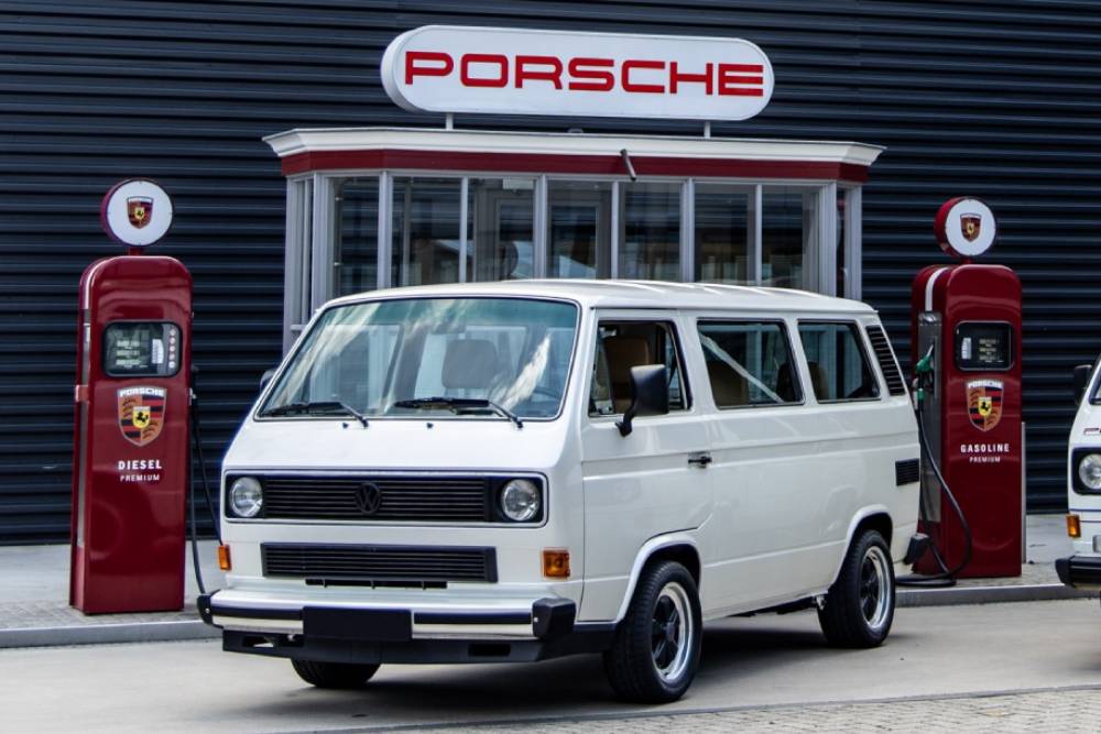 VW Transporter με κινητήρες και εξαρτήματα Porsche υπάρχουν αρκετά, χάρις στην ευρηματικότητα και τη μαεστρία των βελτιωτών. Το λευκό (Mother of Pearl Metallic η πομπώδης ονομασία του χρώματος) T3 που βλέπουμε όμως, διατηρεί ένα ασύγκριτο προνόμιο σε σχέση με κάθε άλλο βελτιωμένο Multivan: προέρχεται από την ίδια, την Porsche!